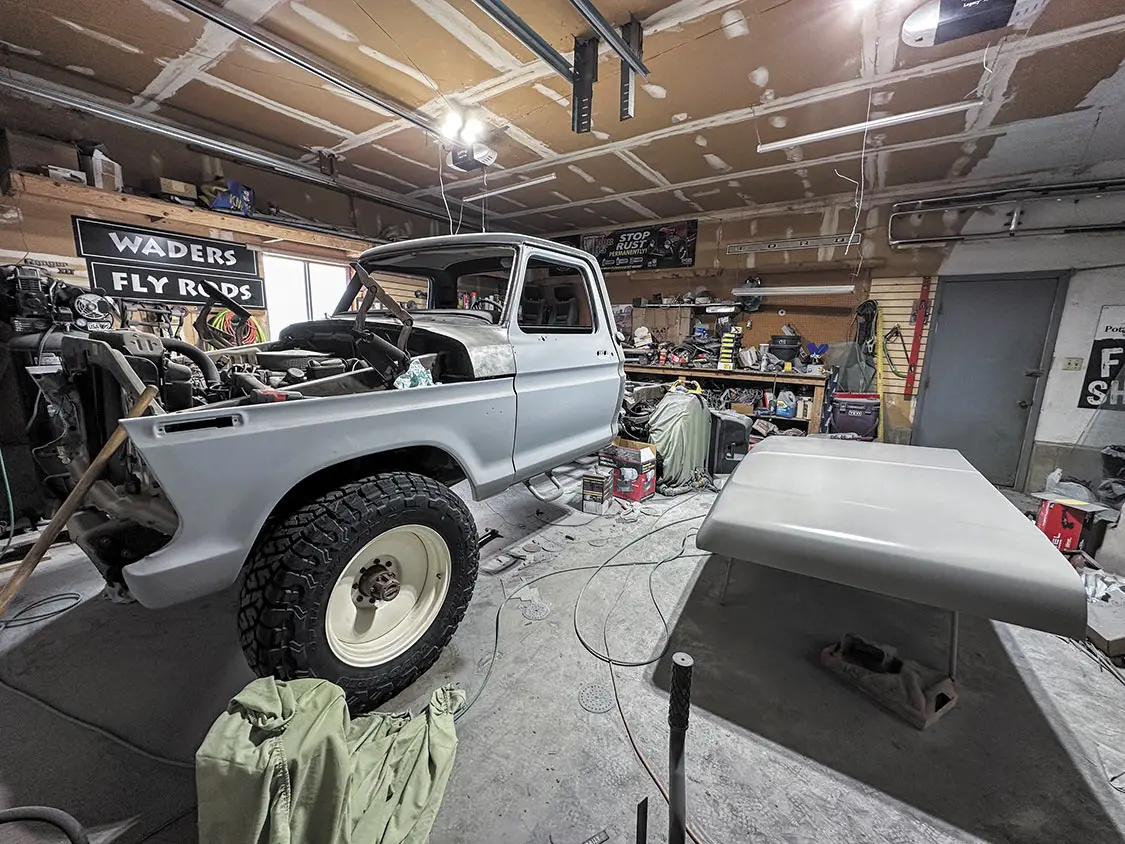 Next, we’ll install the new 4-inch lift kit from SkyJacker so the stance will truly fit the name of the truck. Then we’ll roll it out all outside to make room for the bed and begin its repair and paint process.