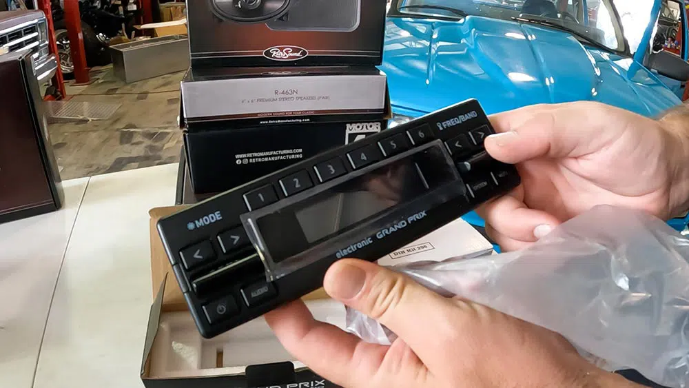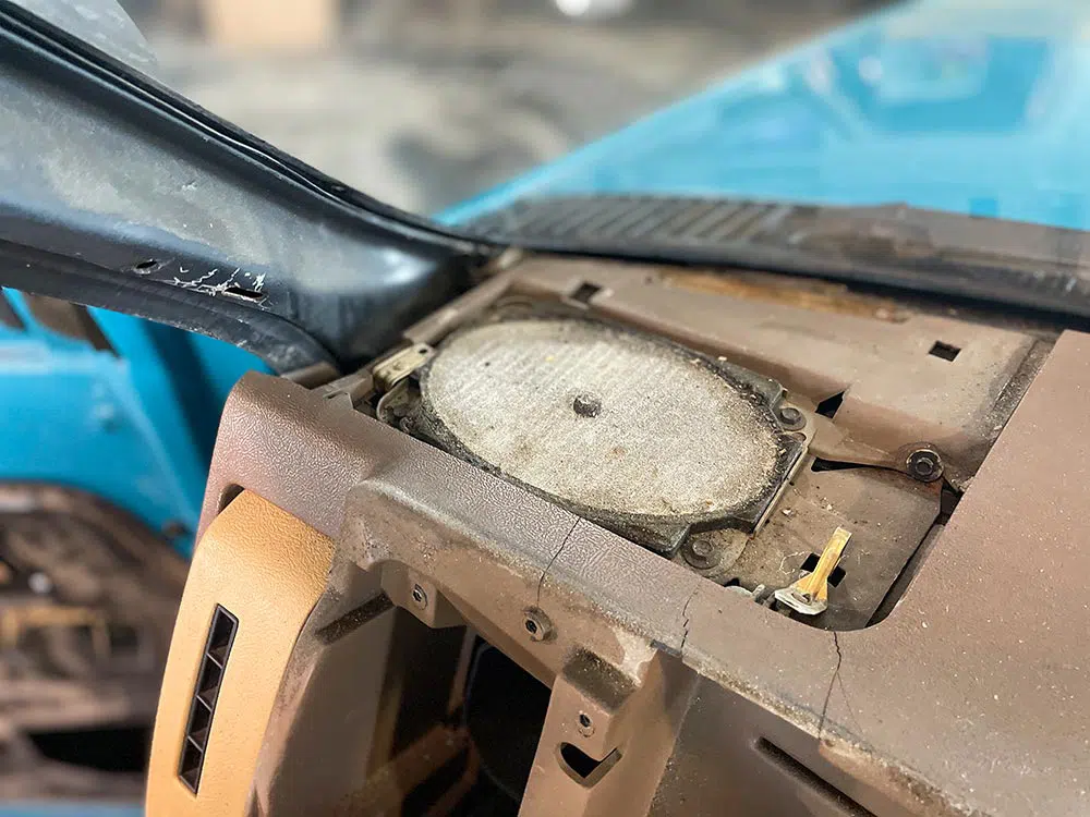 With a smooth-running street machine, it was time to tone down the exhaust sound by turning up some tunes. Because this truck has an ’80s vibe to it, we wanted the audio system to maintain the aesthetic. After digging around the internet for retro-looking, single-din radio options, we came across Retro Manufacturing and its really unique line of audio equipment. With a catalog of many different looking radio faces and classic vehicle mounting systems, we had a feeling this was our company to work with. We ordered up a RetroSound Gran Prix Radio face along with a Motor 4HD Radio Motor, along with its pre-amplified subwoofer, dash, and B-pillar speakers, along with its small but powerful audio amplifier. That’s not all we did this month to our OBS! It’s funner to just dig into it, so let’s go!