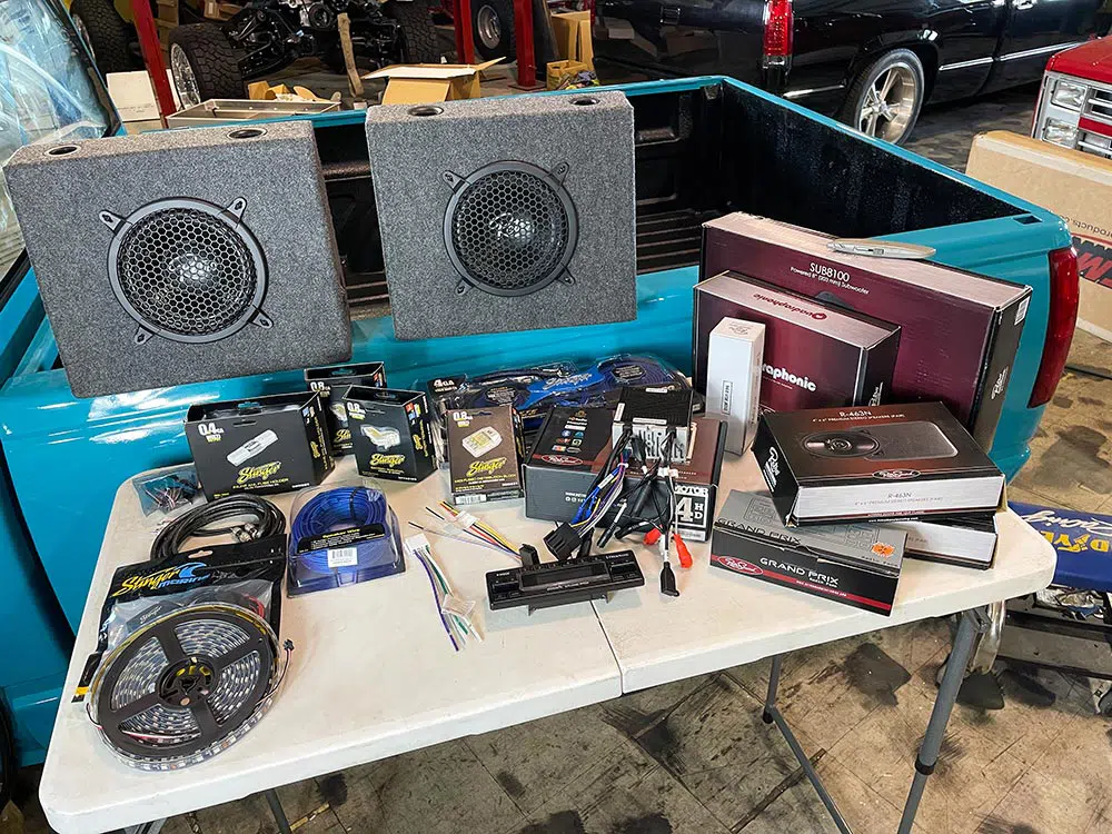 With a smooth-running street machine, it was time to tone down the exhaust sound by turning up some tunes. Because this truck has an ’80s vibe to it, we wanted the audio system to maintain the aesthetic.