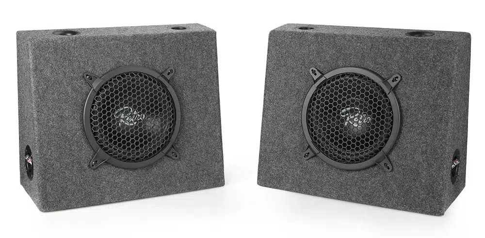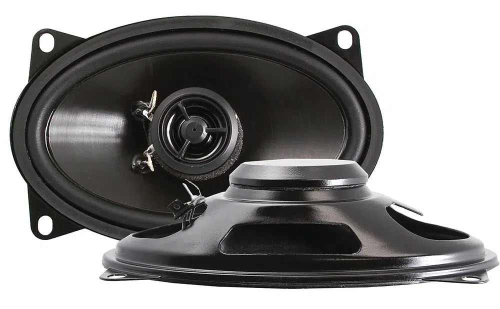 4×6-inch stereo speakers (sold as a pair), Neodymium magnet structure for ultra-thin design, Santoprene surrounds for accurate audio reproduction, Silk tweeters produce smooth and natural highs, Dip-cut magnet for enhanced sound, TrueRating power handling: 25 watts RMS/50 watts MAX power.