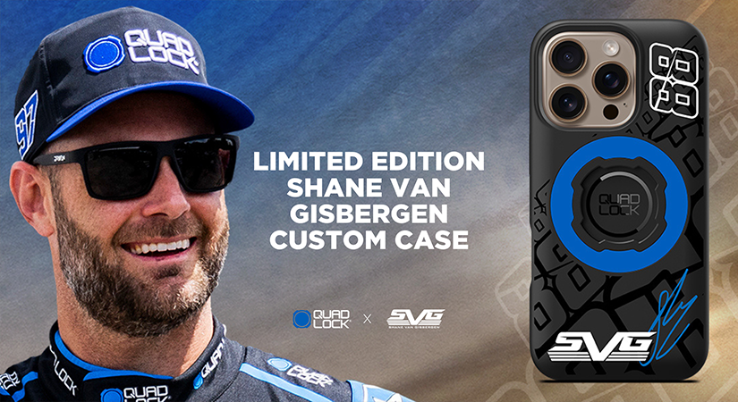 Quad Lock, the global leader in performance phone mounts and cases, today unveiled a limited edition Shane van Gisbergen (SVG) custom case. The new case celebrates the Kiwi racer’s road-course mastery as the undisputed king of the road, offering fans a sleek, secure way to represent their favourite driver on and off the track.