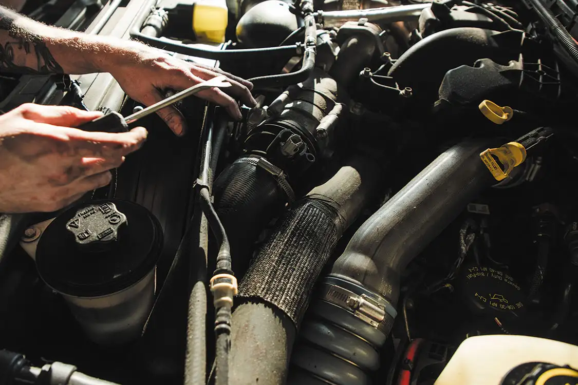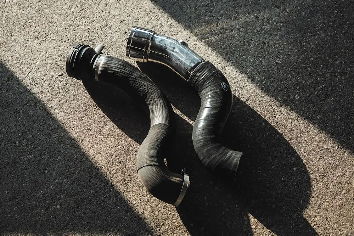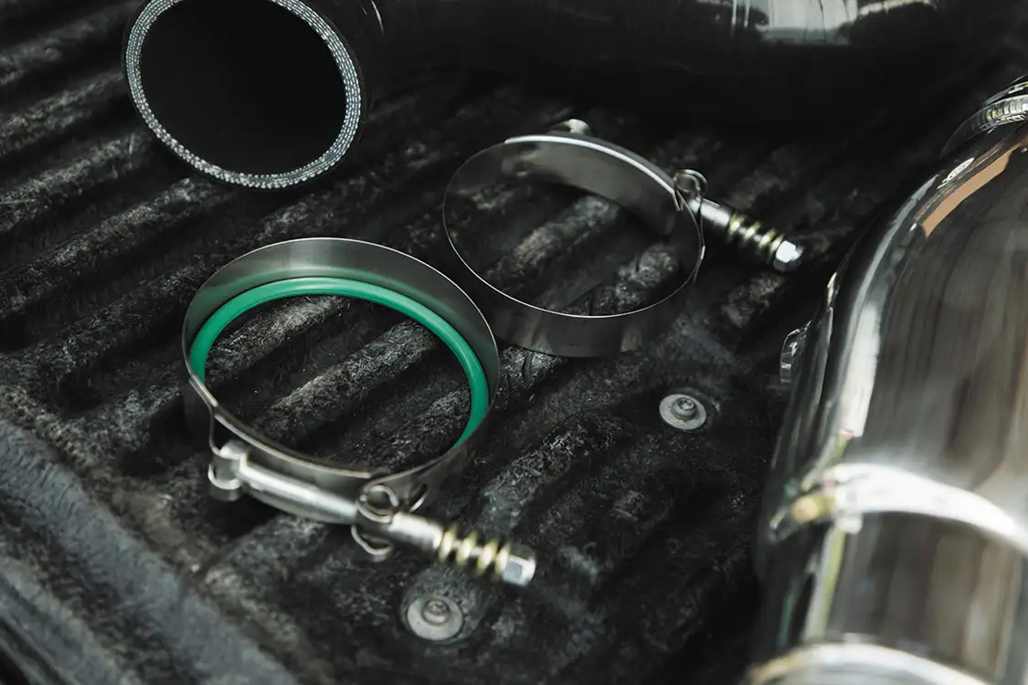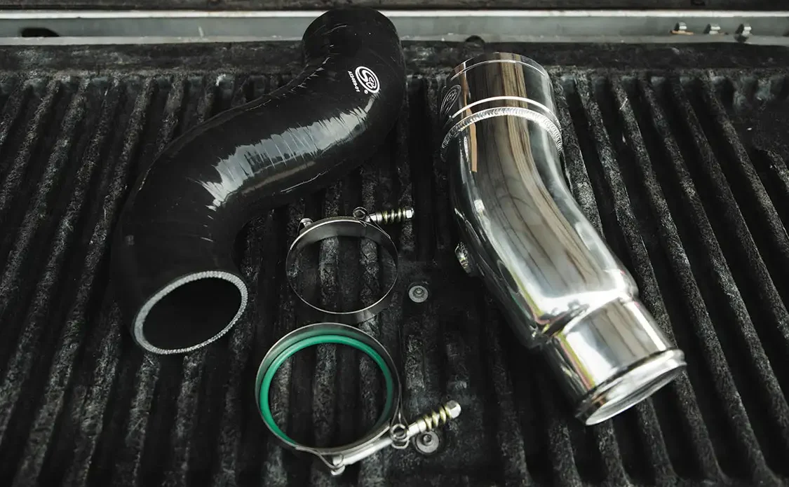 Today we’re going to address a very common problem: a ripped cold-side intercooler pipe on a 2019 6.7L Power Stroke. Our plan is to swap the ripped pipe with this fancy S&B cold-side intercooler pipe replacement (Part #83-1001). Not only will this fix our boost leak, but it will also look great when popping the hood any other time. Let’s get into it!