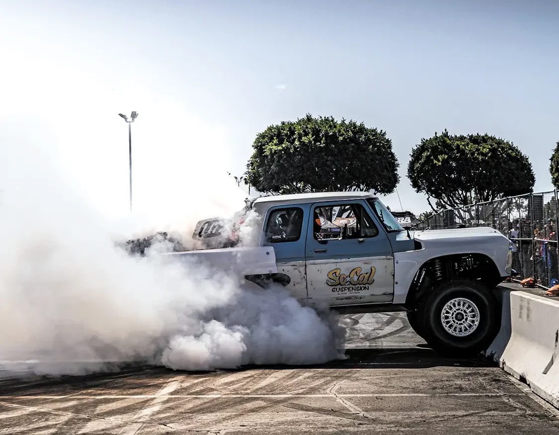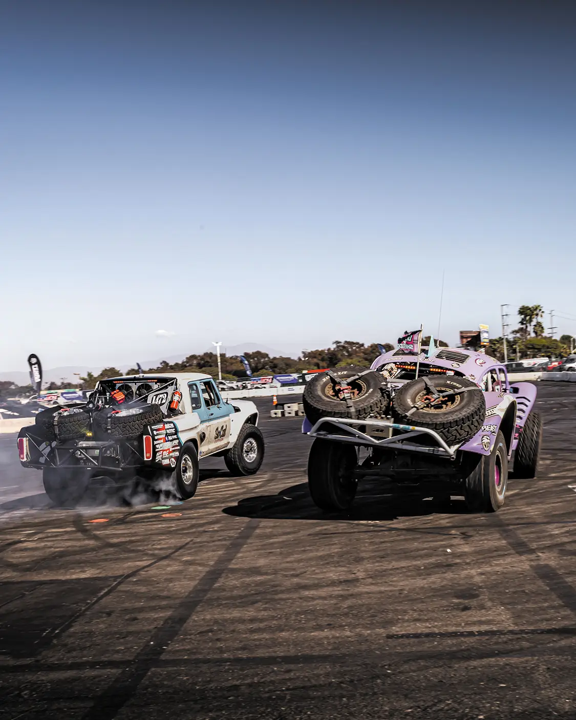 I jumped back into the Expo just before the gates opened. As soon as fans were allowed in, they flooded the OC Fair grounds and covered all inches of the floor, grabbing their spots on the fence before the demo started. Drift cars and trucks go out to party at this show, and they usually burn enough rubber to create an absolute smoke show for all to take in! One of the demos that rings back to me is when Eric Conner put Vivian 2.0 up against the barrier and ROASTED his 40-inch Gladiator X Comp tires like it was nothing. That was one of the most awesome moments in Off-Road Expo history! When Eric is driving, you know something amazing is going to happen, and as a media hand, you better have your cameras ready because it’s something that can make you go viral!