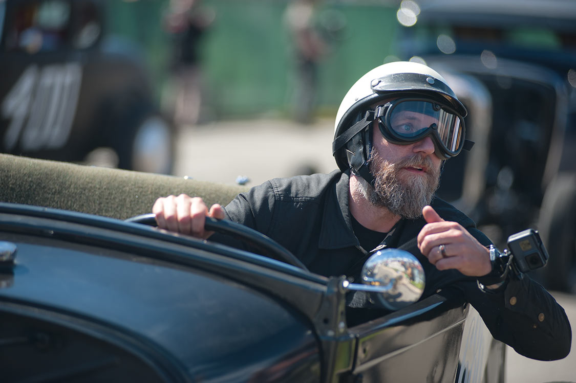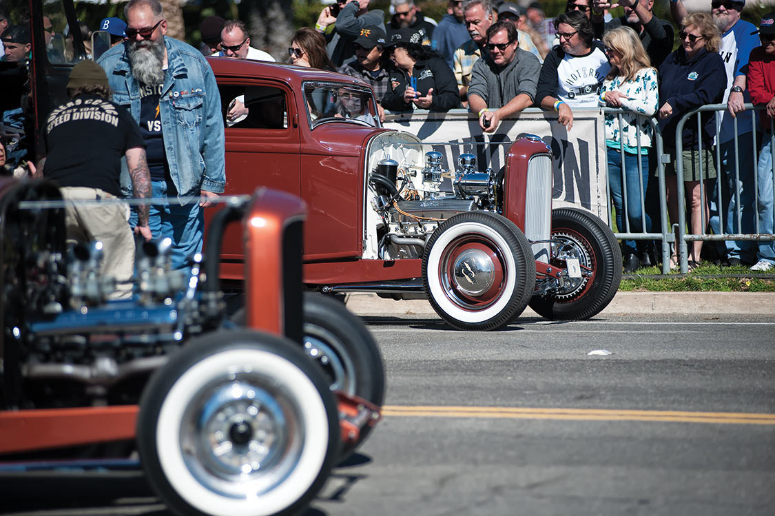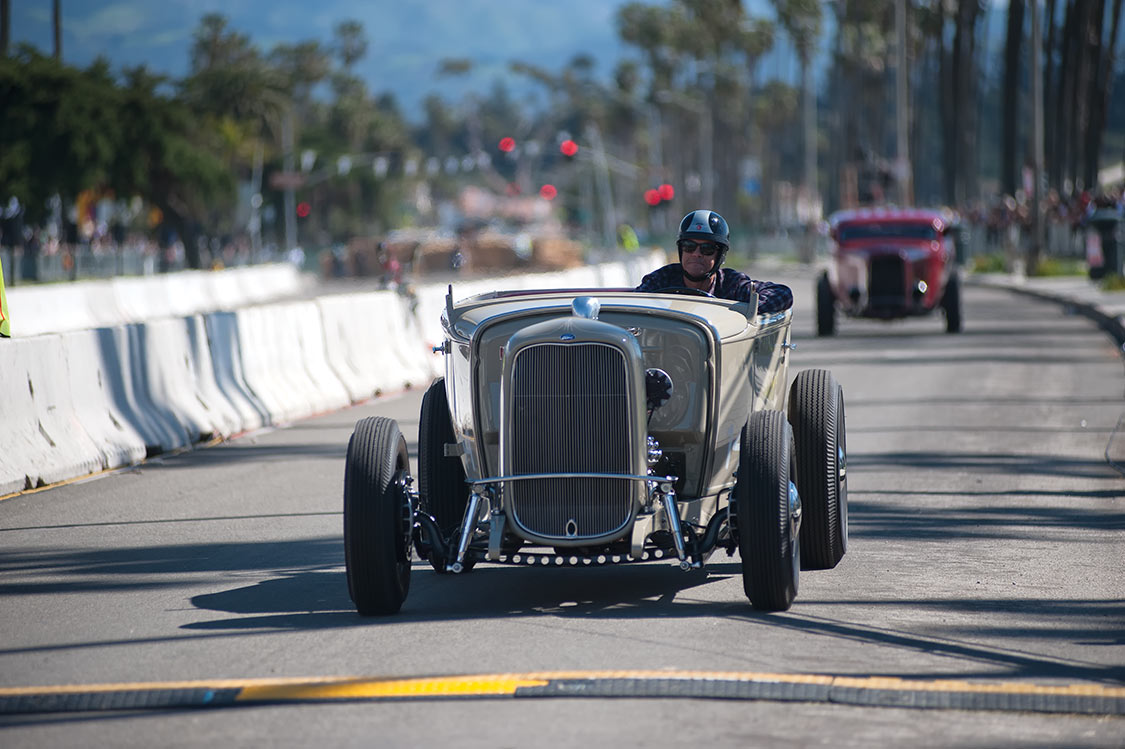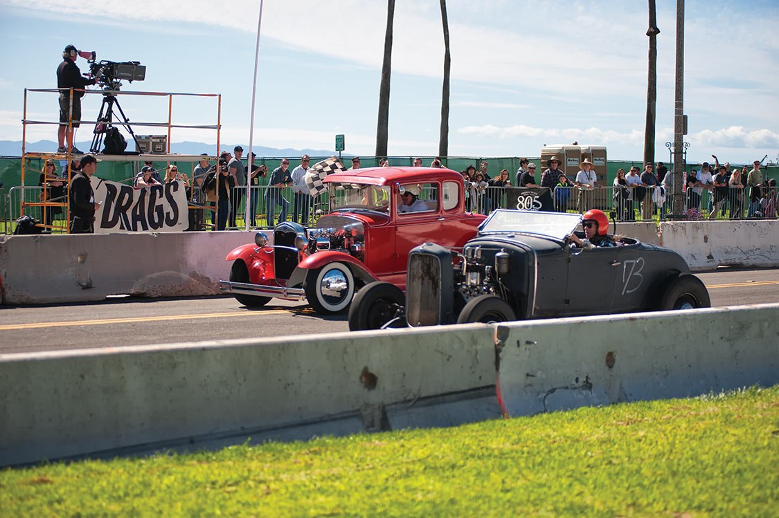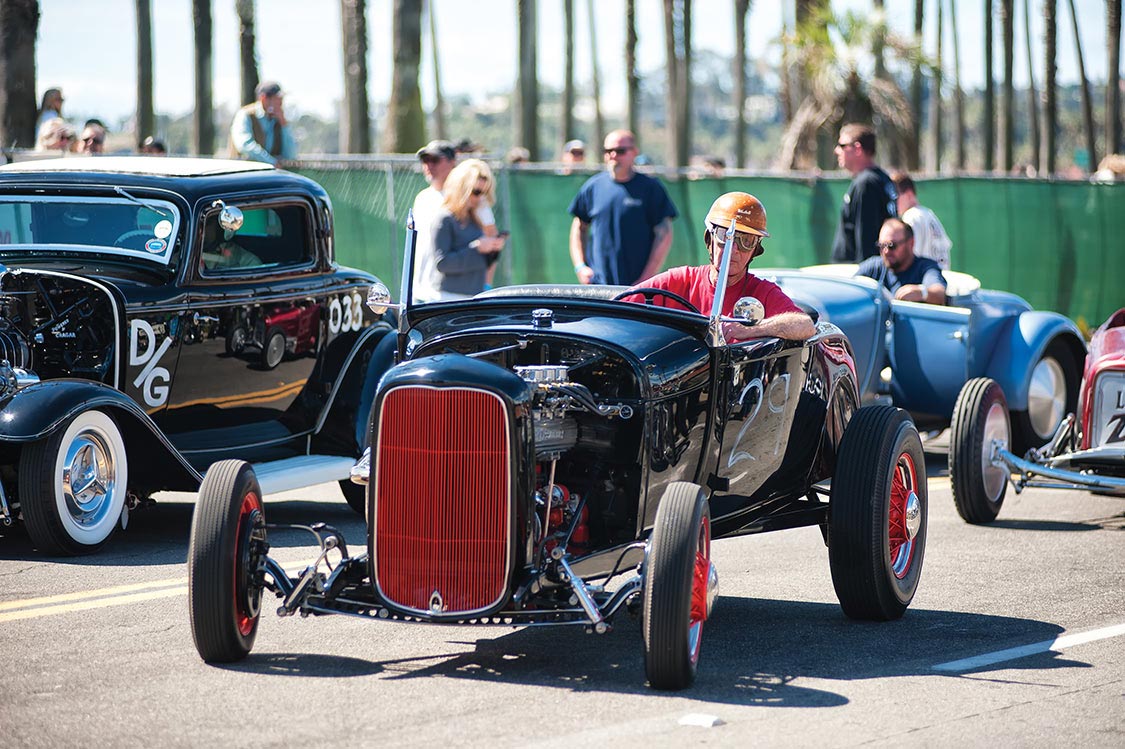 The competition consisted of three groups of carefully chosen “period correct” cars and bikes that run in 3 classes: 4-cylinder cars, flathead V8 cars, and bikes, racing down a 660-foot strip of Cabrillo Blvd. With more than 70 pre-war cars and 30 plus bikes there was plenty to see, and the action was non-stop.