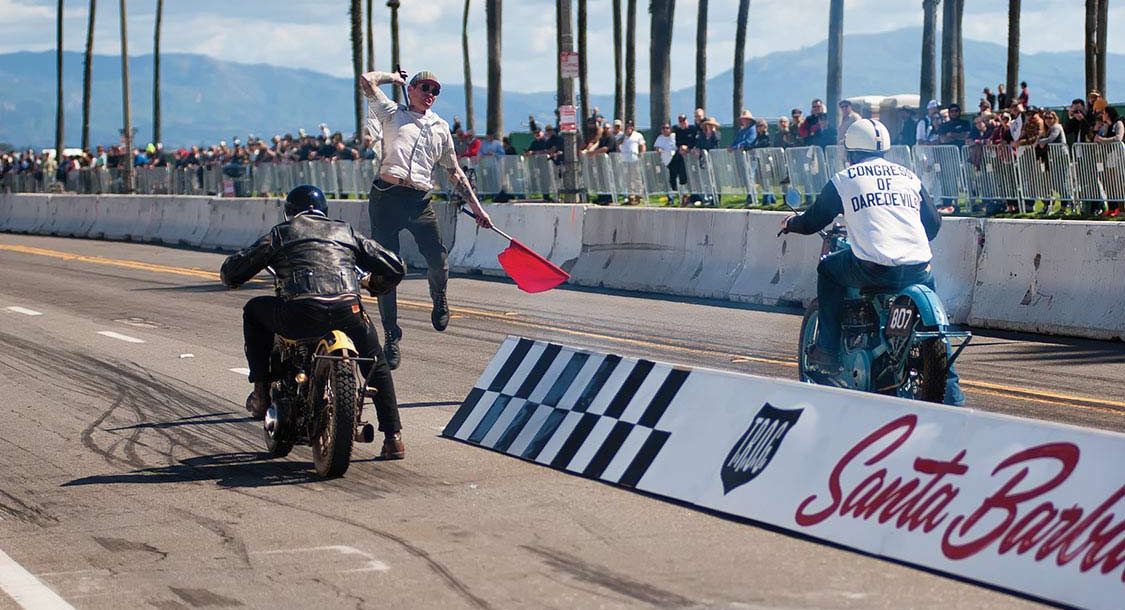 The Event: The Santa Barbara Drags is a street-racing event put on by The Race Of Gentlemen group, who normally race on the beach of Wildwood New Jersey. This year they decided to bring their circus of vintage cars and bikes to the streets of Santa Barbara. The location was the Hilton Santa Barbara Beachfront Resort. This upscale hotel is about the last place you would expect to see vintage hot rods and their owners dressed in period clothing hanging about.