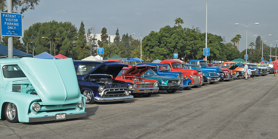 On Sept. 21, 2013, Rancho presented its 2nd annual Rebuilding Cars-Rebuilding Lives car show. More than 180 customs, hot rods, street rods, vintage cars and handicap-accessible vehicles covered the front parking lot at the Rancho Los Amigos National Rehabilitation Center in Downey, California. Along with 14 regular awards like Best Hot Rod, Best Custom and Best Paint, which were officially judged, six special awards were judged by Rancho’s Brain Injury Staff and patients, including Patient’s Choice, Children’s Choice and Best Accessible Vehicle.