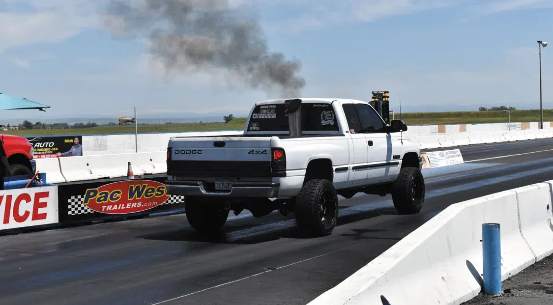 The Golden State Diesel Fest was held at a drag strip after all, so it should come as no surprise that plenty of people were more than willing to spin some tires, and take their trucks down the track. We saw everything from dang near stock 18-second trucks to 10-second stormers, with the majority being somewhere in between. You could do fun runs just to see what your truck was capable of, or you could enter the Bracket, or 7.70 or 6.70 classes. These last two are index classes, where you have to run an eighth-mile as close to 7.70 (about 12.0 in the quarter-mile) or 6.70 (10.50) as you can.