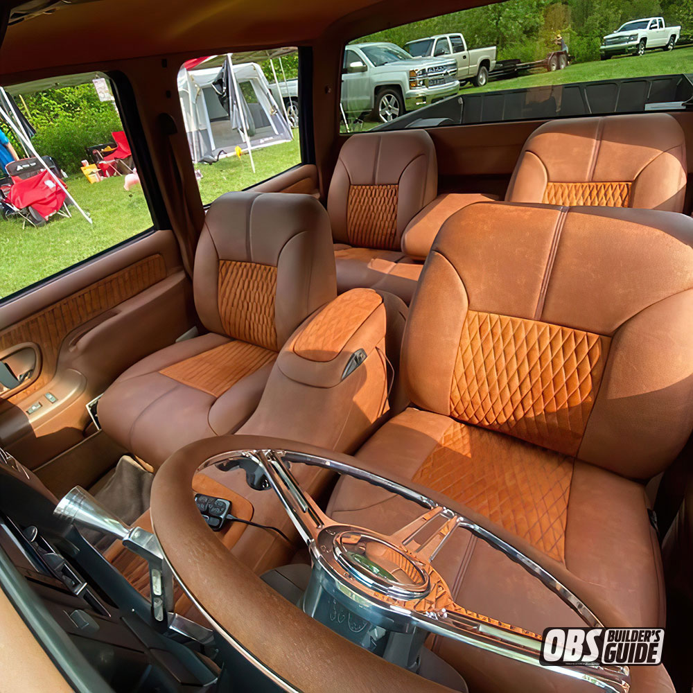 Mods: Midnight sits with a 2-inch drop on 20-inch chrome Voxx wheels with 275/45/20 Nitto NT420V tires all around. Her gray leather interior is mint and the fresh repaint factory Indigo Blue has been ceramic coated to keep her outside looking fresh and wet, which also makes cleaning her a breeze! She’s got a 2-inch cowl hood, upgraded slotted rotors, painted calipers and drums. New aftermarket headlights and tail lights and even a new factory Chevy bowtie exhaust tip. Her tag reads “CHEVY CK” for Chevy Chick. She’s still running her original 5.7-liter with 143k miles. When I got her she was bone stock and has lived her whole life in South Florida until I got her last April. In November she made a trip to Nashville, Tennessee, for the holidays and ran like a champ. She’s my daily driver and the nicest of my three OBS Tahoes and my OBS Suburban. What a fleet!