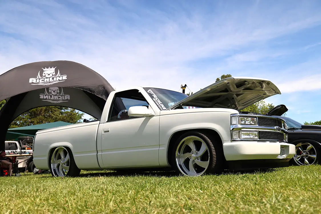 And he wasn’t kidding. With over 450 custom rides parked across the grounds, there was everything from six-figure SEMA showstoppers to home-built rigs with stories to tell. Big lifted diesel trucks were sitting beside body-dropped mini-trucks. Imports, lowriders, classics, and off-road rigs were there too! This event didn’t care what you brought, as long as it was cool.