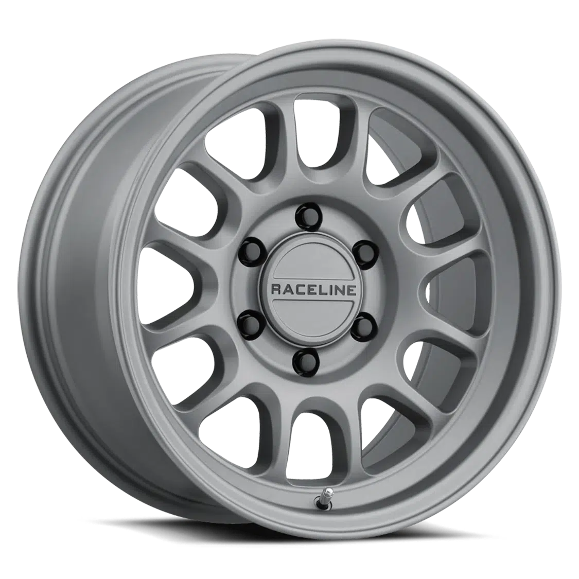 Clean off-road inspired spoke design and color matched caps with embossed Raceline logo for a seamless look. Constructed out of heavy duty A356 aluminum. Available in 16- to 20-inch diameters for most 5-, 6-, and 8-lug trucks. Passes or exceeds all DOT standard load ratings and has hub centric fitments available for select vehicles. Includes a lifetime structural warranty (limitations may apply).