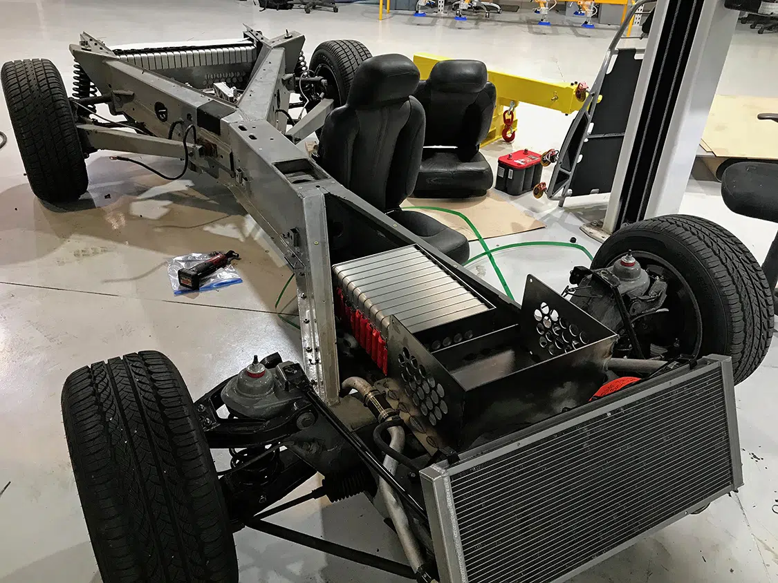 “I started the project by removing all the ICE-related components—engine, transaxle, fuel tank, fuel lines, fuel pump, and HVAC plumbing,” Jacob said. “This gave me a sort of blank slate to work with. I separated the body from the frame so I could get to planning the most important parts of the build—drive unit and battery installation. With the body off, I could gain good access to the frame to measure everything.