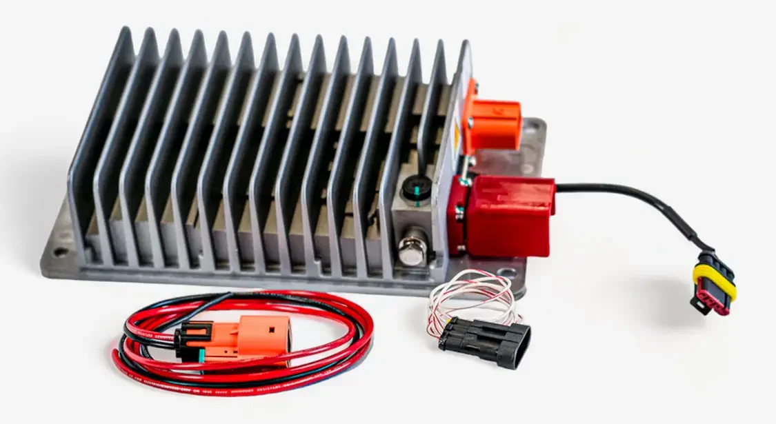 DC-DC converters are available as stand-alone components or come packaged in a combined charge unit, which also includes on-board charger functions. DC-DC converters can be sourced in 1kW to 2.7kW power outputs, which can provide 73A to 197A of DC current to a 12V battery.