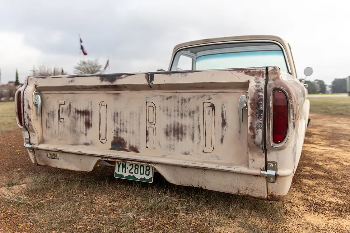 Soon after finding the bed, Shannon stuck gold once again by finding a set of matching unibody doors as well as a big back window that would finally give his F-100 the aesthetic he was after.