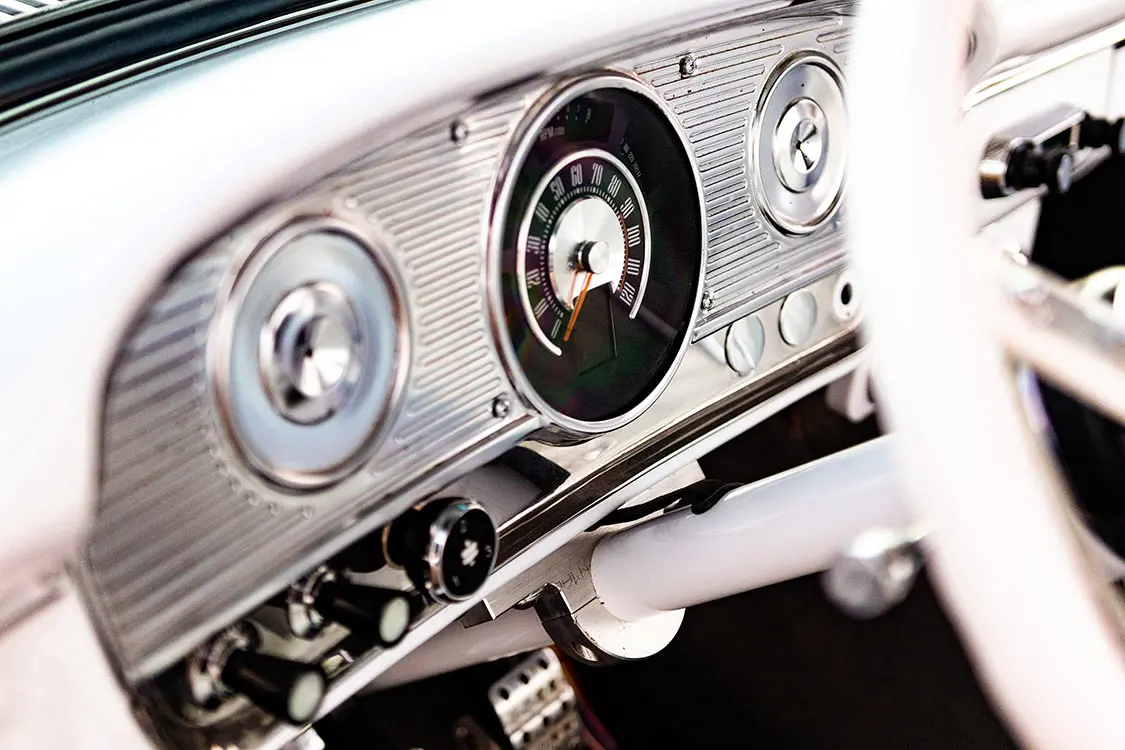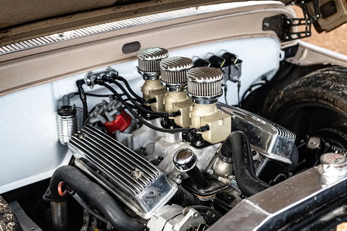 Since Shannon’s main concern with the truck was to drive the hell out of it once it was completed, his next move was to set his sights on getting a fresh engine prepped for it. While a modern engine may have been an easier option to run with, he instead decided on rebuilding a tired ‘63 Y Block 292ci that he already had in his possession. Eddie’s Hot Rod Shop in Canon City, Colorado, went through the entire engine before topping it off with parts from OTB Gear and Spotlite Kustom Accessories, along with a Fenton intake manifold and headers to keep the mill looking vintage. Shannon also wanted something reliable for the engine’s fuel delivery, so he had it hooked up with Autotrend EFI to promote that jump-in-and-go feeling whenever he felt like going out for a cruise.