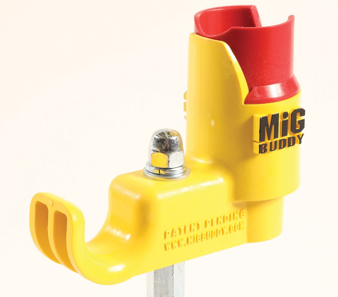 Description: MiG Buddy is a welding gun holder designed to fit many MIG welding guns. With its Universal Mount, the MiG Buddy adapts to any work environment welding table/bench, welding cart, or directly on the work piece just about anywhere. Easy retrieval and easy docking of your welding gun. MiG Buddy is like having a third hand.