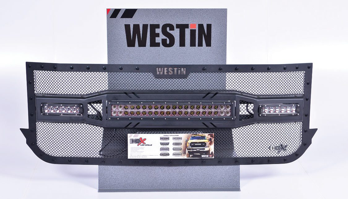 Description: Our HDX LED Grilles feature a form fitted mesh grille with laser cut Westin logo and 11 gauge steel frame with the light housing made of 16 gauge steel. Includes (1) Double Row Combo LED Light Bar and (2) Flood or Spot Single Row LED Light Bars.Westin?s HDX LED Grille offers easy bolt-on installation so no drilling is required.
