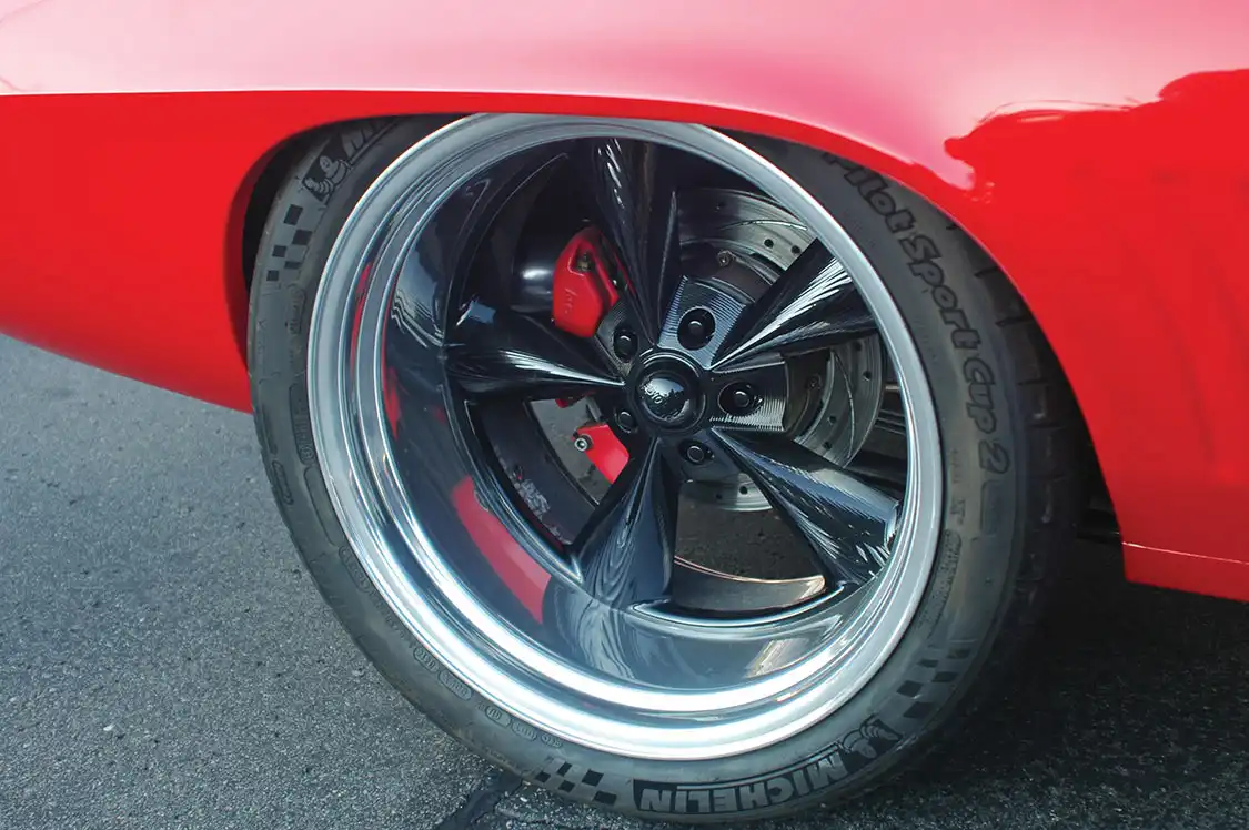 Tires and wheels put the exclamation point on all Pro-Touring-style rides. For this Camaro, Colorado Custom Lazaer wheels and Michelin tires were mated. Fronts are 18×8 alloy on 245/40-18 rubber. Rears are a steamroller fitment of 20×12 style on 345/30-20 tread.