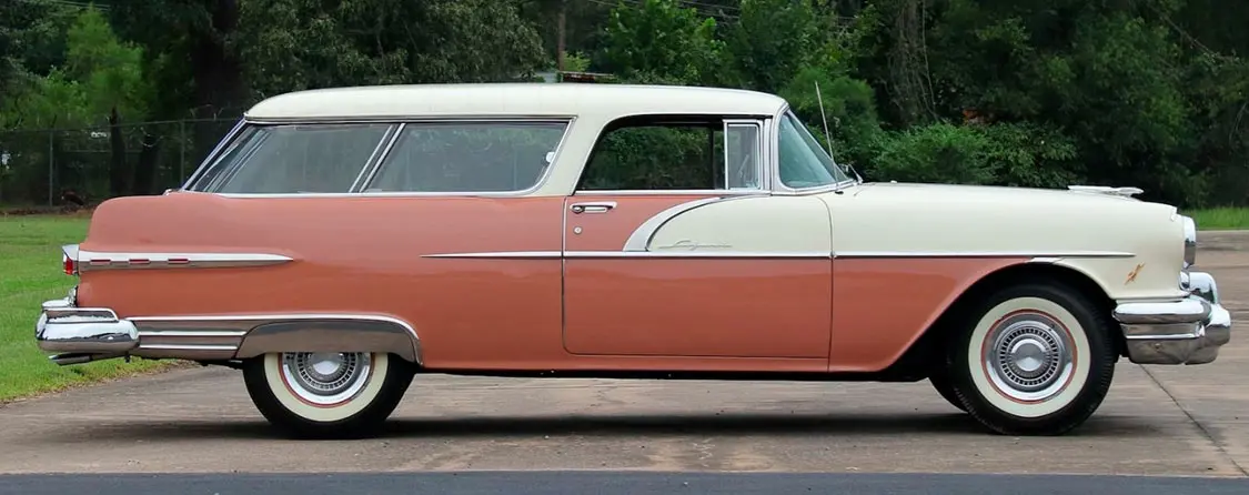 Everybody loves the Tri-5 Chevy Nomads. With the two-door wagon styling and rear hatch, they are favorites among all classic car guys. But another rare and cool option was the Pontiac Safari. This is where General Motors took the Nomad platform and added a ton of chrome trim. As you view these different cars you will obviously notice that the doors are the same along with the same glass and window trim.