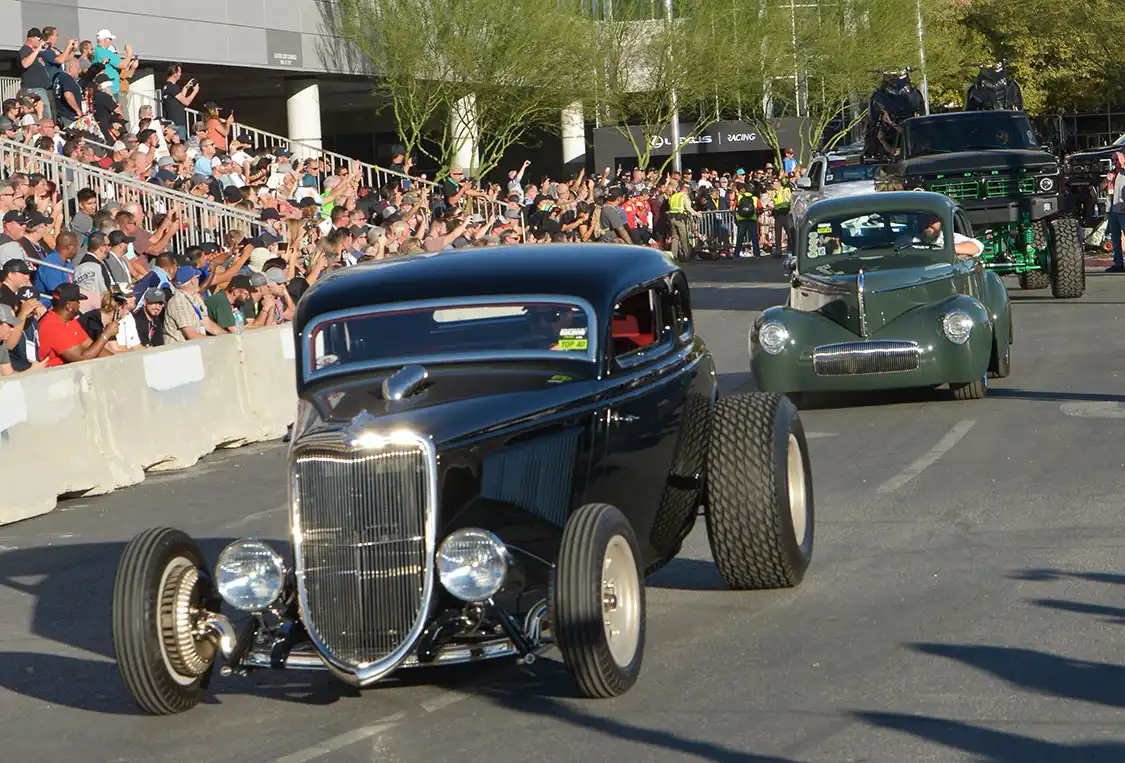 That was then. Today, spectators are welcome to sit on the bleachers provided by the SEMA organizers and be witness to the vehicular splendor as they roll out and on to SEMA Ignited, an event which was also dreamed up out of the recognition of the public interest. While the SEMA Cruise is free and open to those who can secure a place along the route, the SEMA Ignited show is a curated event that has nearly all of the vehicles that have made their way along the exit route and then parked on display for a closeup look for attendees that have paid for tickets to the public event.