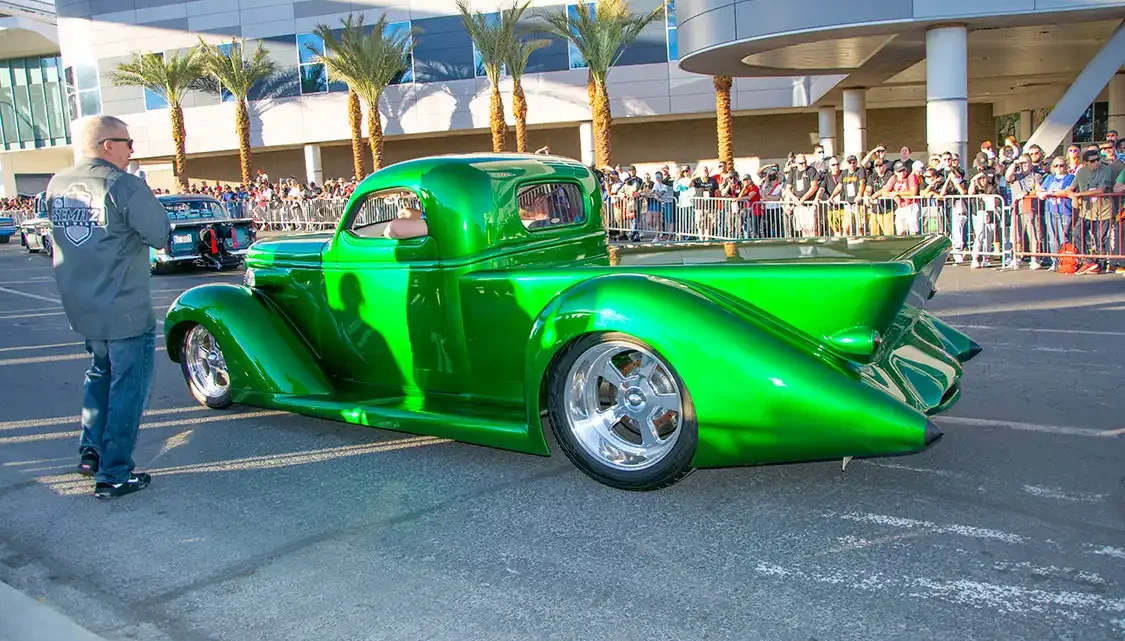 Speaking of diversity, I can think of very few shows that have supercars rolling just behind a rusty rat rod, and just ahead of a high-riding diesel show truck. This roll-out keeps your eyes transfixed on the next and next. They stream past you seemingly endlessly. This year there are more than a thousand coming out of their week-long time on the carpeting inside the Convention Center halls.
