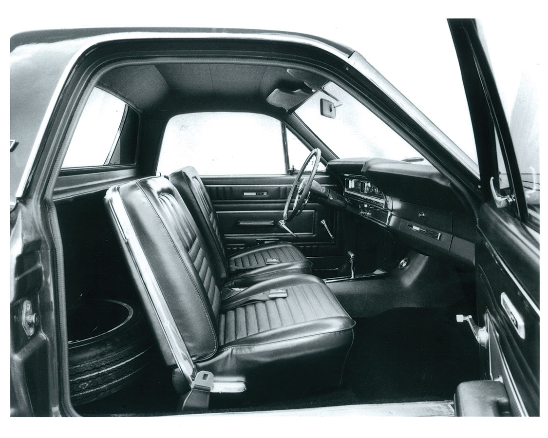 In keeping with new Federal Safety mandates, Rancheros were now equipped with dual-master braking systems, padded interior windshield pillars and safety steering columns.
