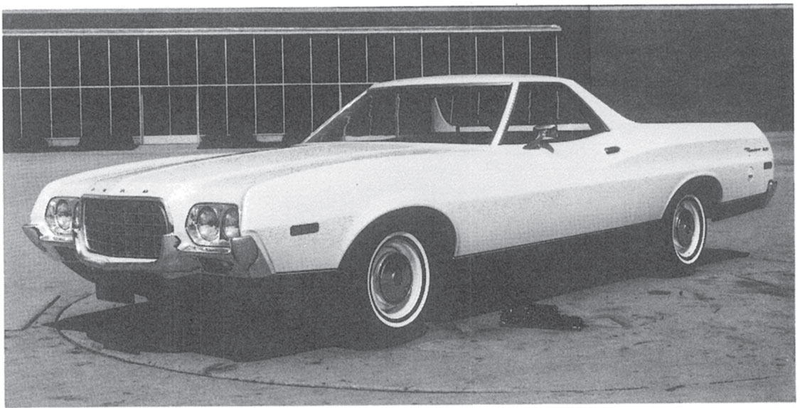 Massive government safety intervention hit the market squarely during these years and the Torino/Ranchero platforms certainly were no exception. Massive bulk now displayed itself prominently in the front-end designs. A heavier grille cavity replaced the previous narrower editions. Front dual headlights were again separated from the grille assembly. The new look was certainly more aggressive and created a love-or-hate relationship with buyers of both series. Although three series were offered, the paper chase now designated a base 500, a wood-grained equipped Squire and the GT. Ranchero also returned to body-on-frame construction, riding on a 118-in. wheelbase.