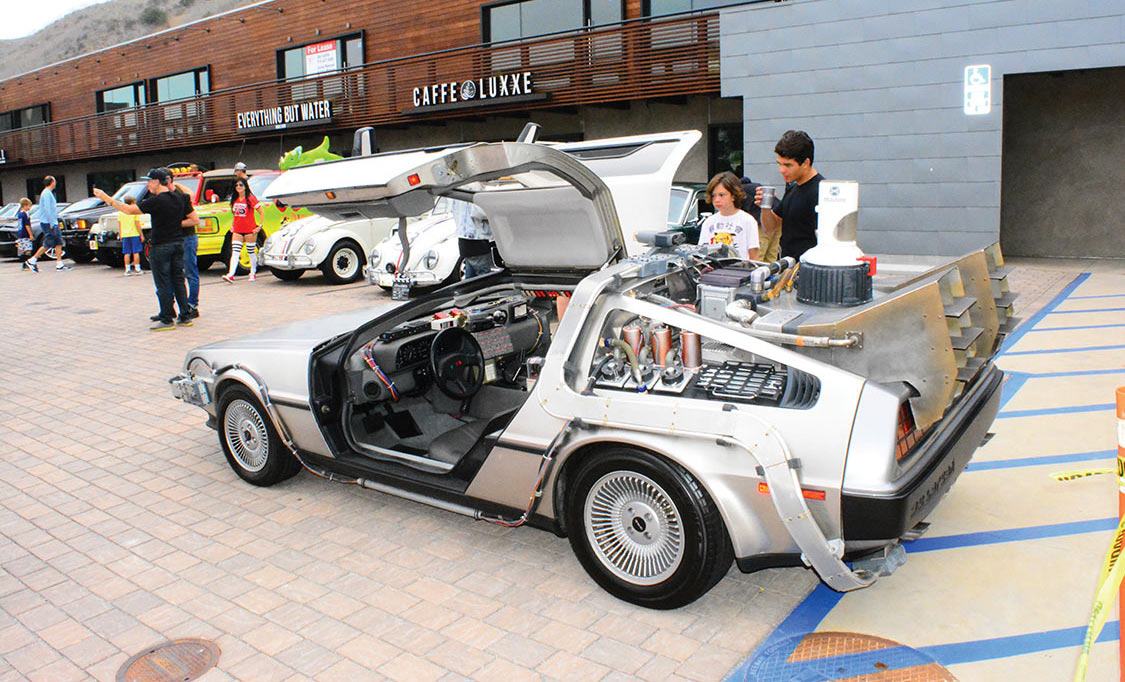 The unique show took shape quickly as each of the vehicles arrived to a growing crowd of appreciative onlookers. As I walked by and between these immediately recognizable icons of TV and movies it created moments that took me back to the times when these vehicles were such a huge part of my consciousness. These cars had personality. The thought of the Ford Gran Torino nicknamed the “Striped Tomato” of Starsky and Hutch still plays in reels in my memories as they smoked the tires around corners in hot pursuit of the “perp”. The excitement of the Bullitt Mustang in high-speed chase of the black Charger through the streets of San Francisco. The electric Delorean time machine which, as we all know, requires a power input of 1.21 gigawatts to operate the flux capacitor when the Delorean has achieved 88 miles per hour. Thus transporting us into the future, the past, or anywhere we find ourselves tuned-in to these fabulous pieces of entertainment history. And even without a time machine, we can be transported by mere site, as witnessed by so many in attendance at this Star Cars show.