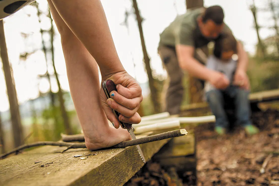 It’s not set in stone when it is the right time to teach a child how to use a knife. I have already seen 5-year-old kids who carved amazingly safely. But I have also seen 13-year-old children I wanted to stop immediately and take the knife away from them. It seems important to me that the initiative comes from the child. This shows that he or she is interested in learning the safety rules and techniques.