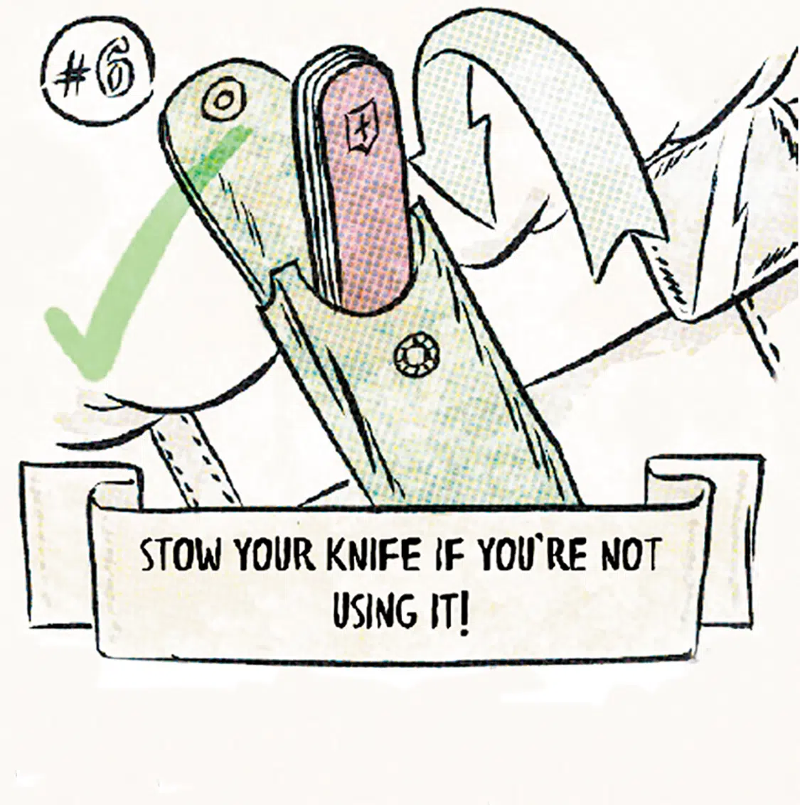 6. Stow your knife when you are not using it