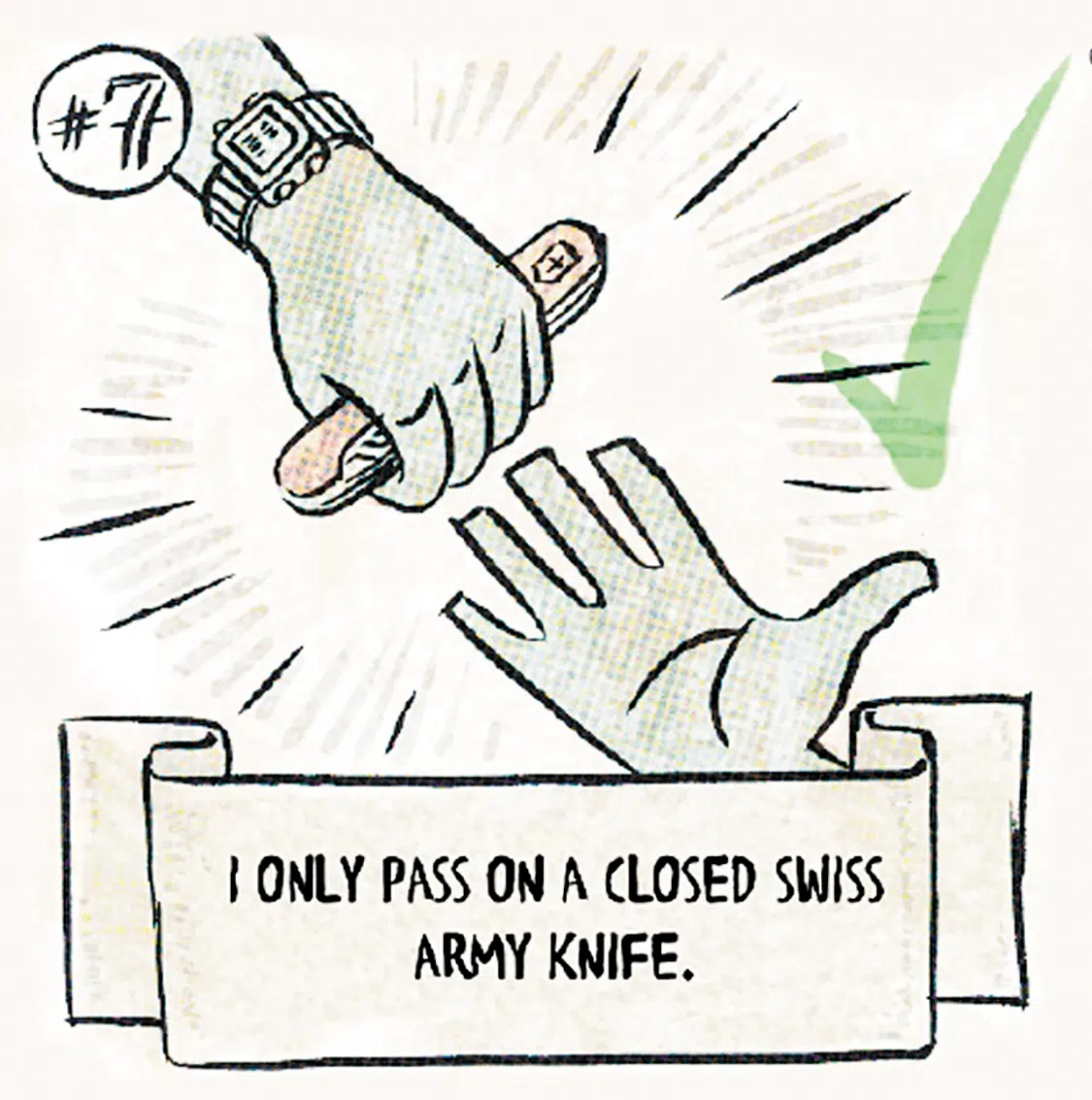7. Pass on a closed pocket knife only