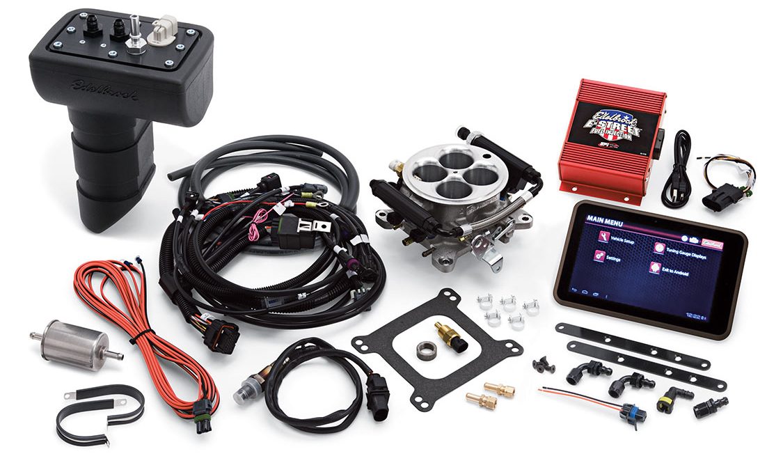 The E-Street EFI is an easy to use self-learning universal throttle body style fuel injection system. It’s ideal for any V8 engine originally equipped with a carburetor and intake manifold with a square-bore 4150 style flange. It features a pre-installed, easy to use, interface on the supplied touch screen tablet PC. This application allows the user to fine tune, make adjustments and monitor system performance without the need of a laptop PC. E-Street EFI offers you the most value for your dollar along with out-of-the-box performance from a name you can trust.