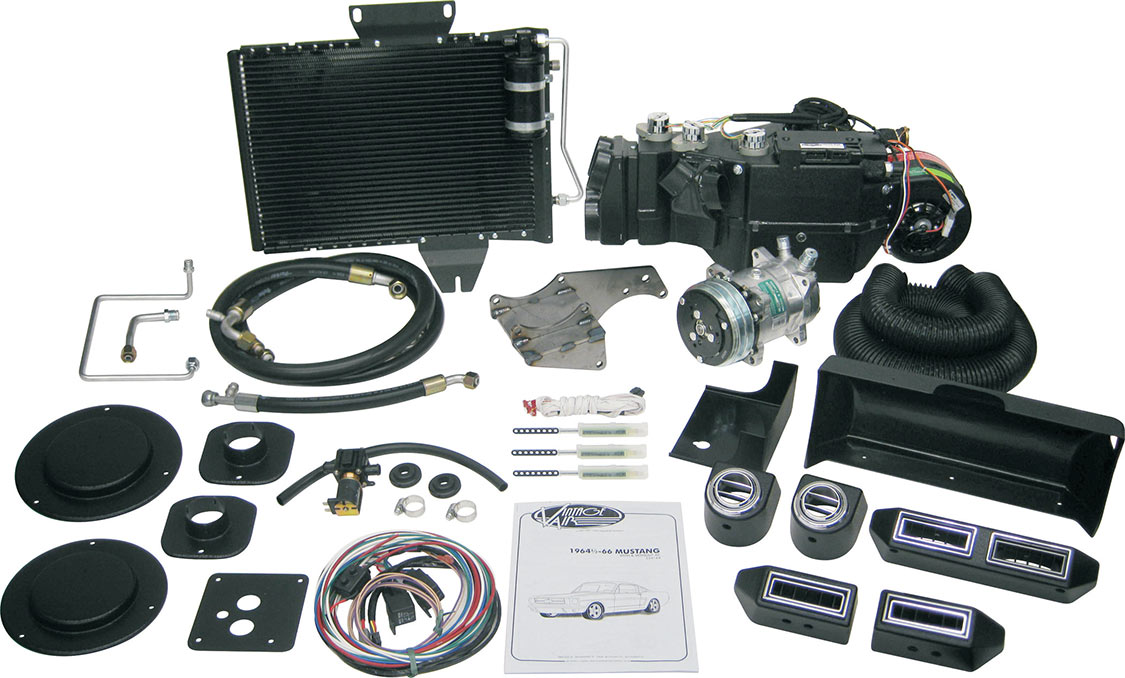 The newest SureFit Climate Control Systems now deliver Vintage Air’s famous Gen IV “Just Right Temperatures” and dehumidified defrost to 1964-1/2 to 1966, 1967 to 1968, and 1969 to 1970 Mustangs. It features exclusive fully electronic micro-processor controls requiring no cables or vacuum connections. Separate high capacity copper parallel-flow heating coil and aluminum plate and fin cooling coils provide outstanding performance and instant temperature adjustments.
