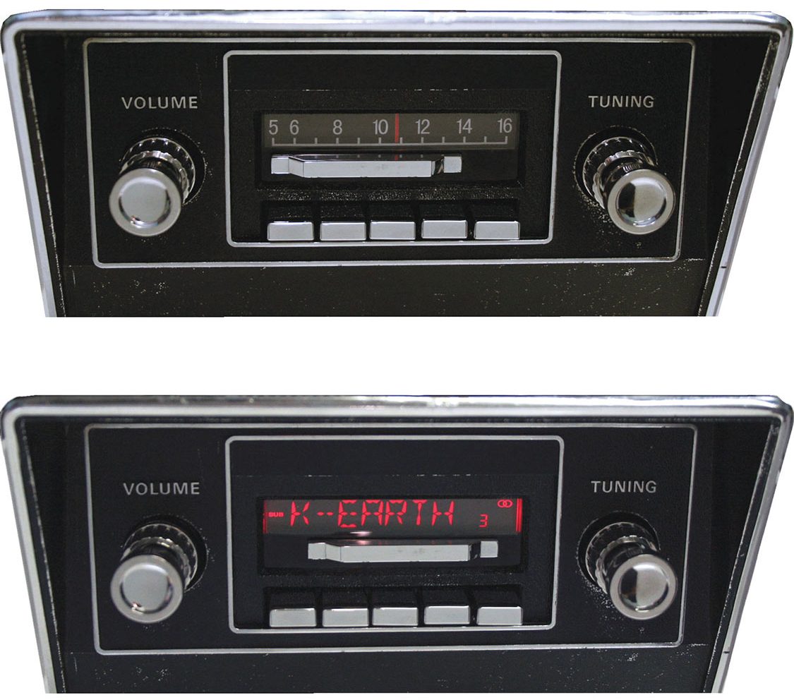 The most original looking, direct OE fitment radios from Custom Autosound. Over three years in development, they offer models for ‘64-’73 Mustangs, ‘68-’76 Corvettes, and ‘67-’72 GMC/Chevy trucks. Appears analog and with a slide of the SlideBar the digital display is revealed. Features include 300 watts of power, direct iPod charge and play, a Bluetooth option and more.