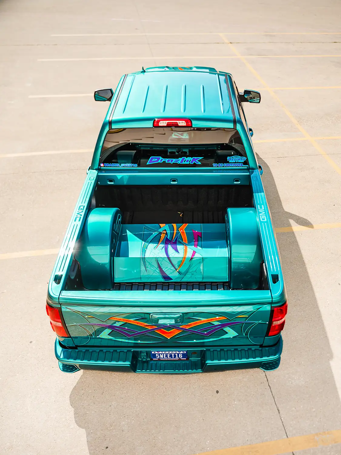 Sweet16 is more than a showpiece—it’s a rolling reminder that with hard work and determination, even a modern truck can become a timeless custom. Follow along with the photos to see how Enrique turned this 2016 GMC Sierra into a teal green stunner that lives up to its name.