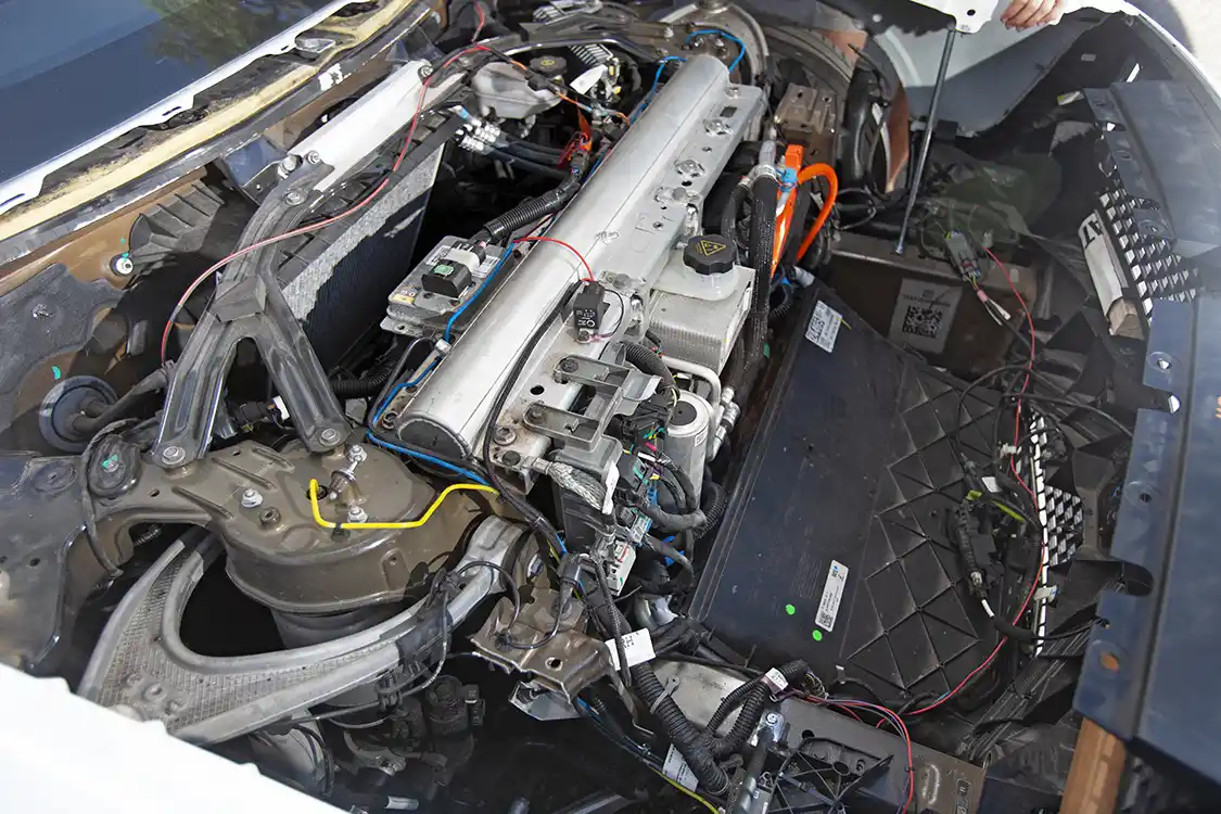 The Plaidessey wasn’t just a YouTube hit—it changed the trajectory of BoostedBoiz’s channel. Kyle had dabbled in EVs before, but the sheer insanity of the Tesla Plaid drivetrain ignited a new passion. He had proven he could make an electric minivan fast, but what if he took things in a different direction? Cue his latest creations, a 2016 Dodge Challenger Hellcat body grafted onto the Model S Plaid drivetrain. While the Challenger and Model S share a nearly identical wheelbase, making them a logical pairing, the work involved was staggering. Unlike the Odyssey build, which kept much of the Tesla’s original structure, this time Kyle went all-in on re-bodying the Plaid platform.