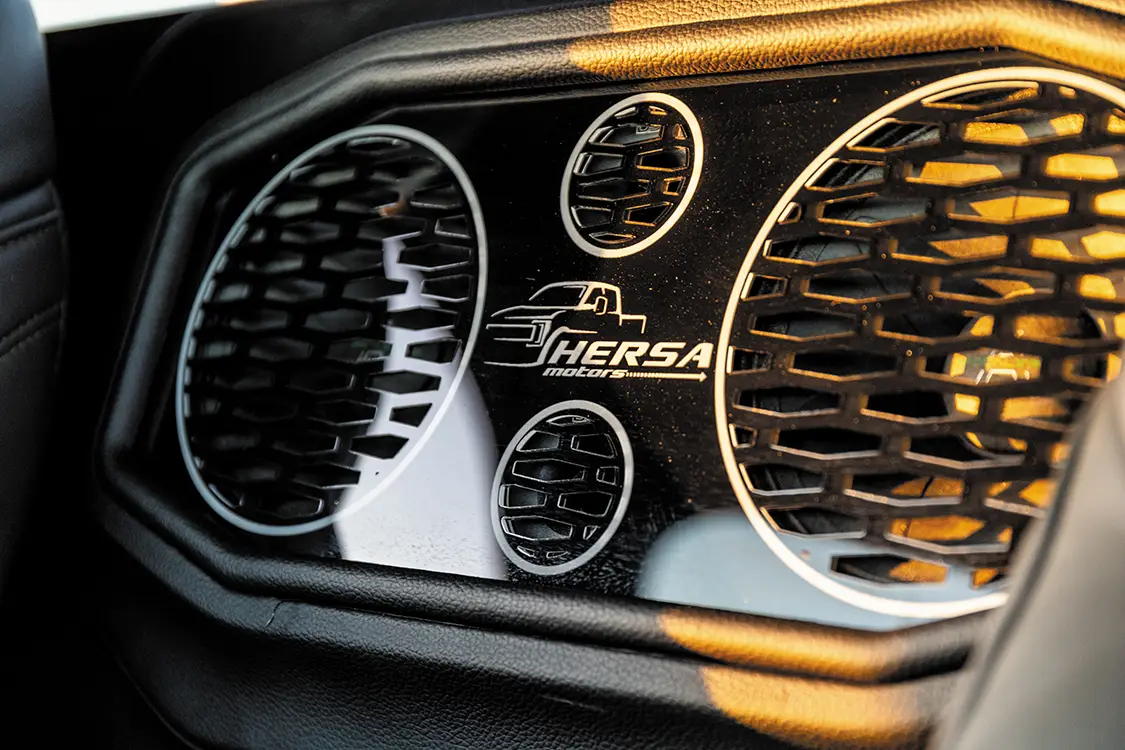 Providing the soundtrack for this masterpiece is a brutal audio assault designed by the legendary Pete Cantu and his crew at Supreme Sounds in Pharr, Texas. It’s not just loud; it’s a symphony of concert-hall highs and earth-shaking lows, emanating from meticulously crafted custom enclosures. This F-150 is the total package and a benchmark build that proves Hersa Motors isn’t just following trends—they’re creating them, unleashing a statement piece that solidifies the 956’s reputation as the undisputed king of custom trucks.