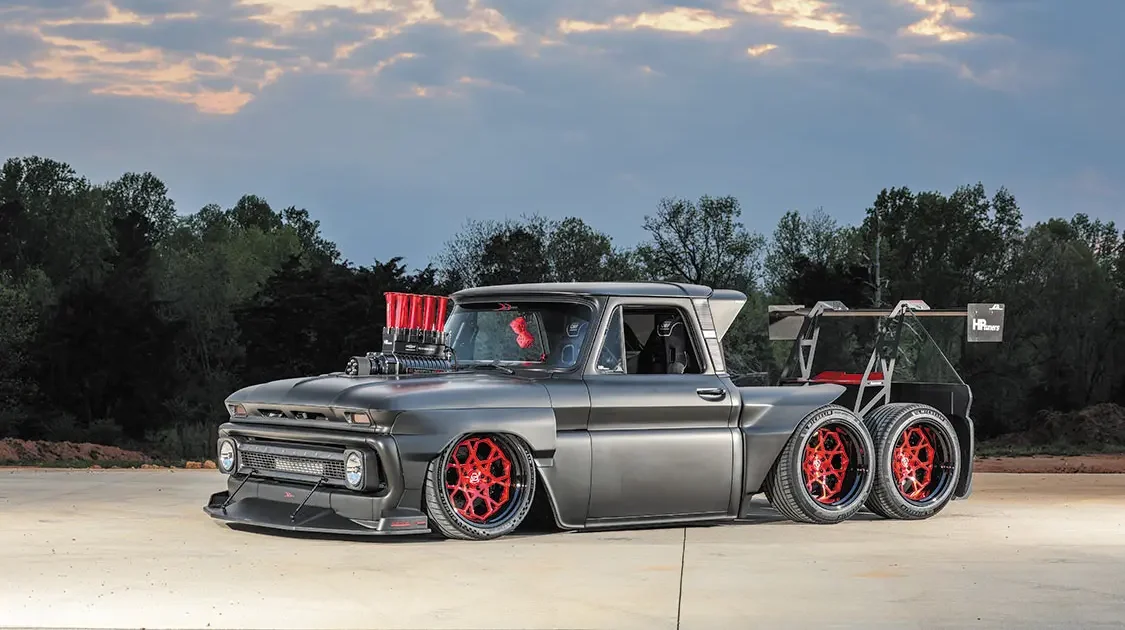 With a little bit of joking around out of the way, the guys started on the build process by requesting the assistance of entrusted Scott’s Hot Rods to fabricate a full custom chassis system that they could fine-tune to jibe with truck’s upcoming dual rear 9-inch pumpkins. Brad first envisioned this project having six wheels, and he never wavered from that initial design even after hearing from every direction just how crazy it was going to be. There was never a doubt in Brad’s mind that Scott’s did deliver on a perfect frame for the C10 complete with a set of Mittler Bros Hydroshox to give the truck 5 inches of adjustability—from an aggressive ride height to low-as-hell parked stance. The wheel selection just had to be killer to fit in with the whole theme of the build, and nothing short of a six-pack of 20-inch Govad G67 wheels wrapped in 275/35/20 Michelin Pilot Sport high-performance tires would do the trick.