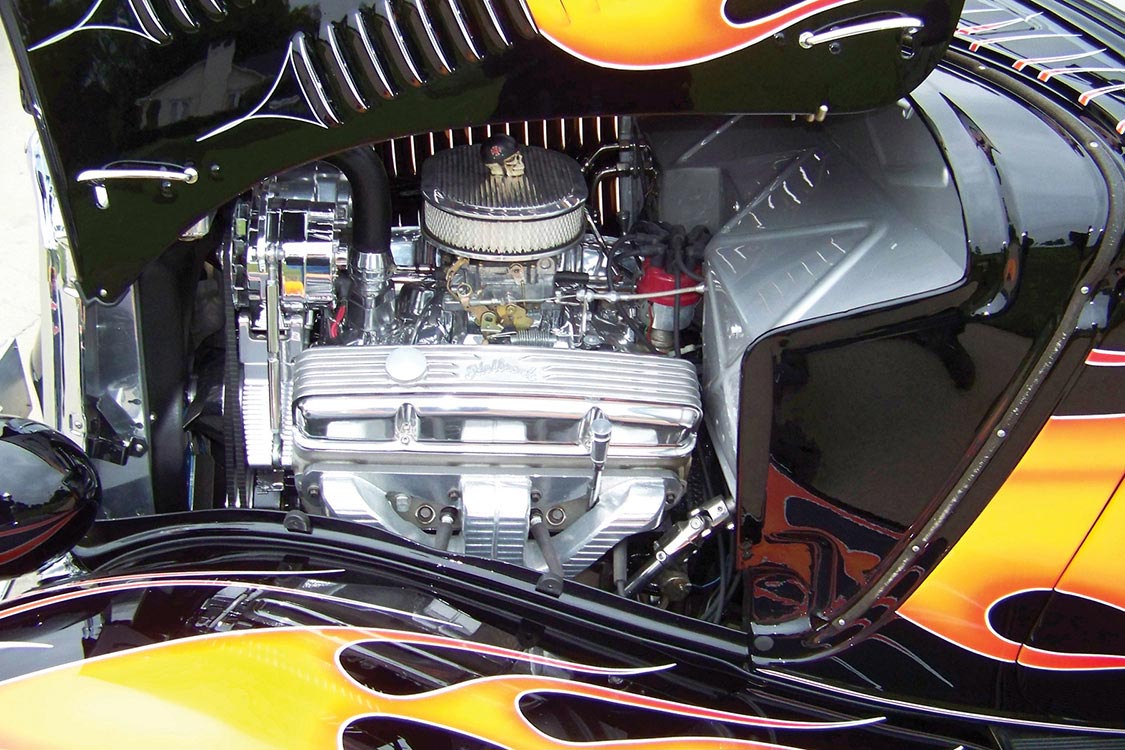 Engine: Balanced/blueprinted Chevy 383-ci stroker; Edelbrock Performer air gap intake, valve covers and fuel pump; Trick Flow aluminum heads, Zoops brackets and pulleys; Gotta Show stainless fuel line; F.A.S.T. EFI; Stewart Components water pump