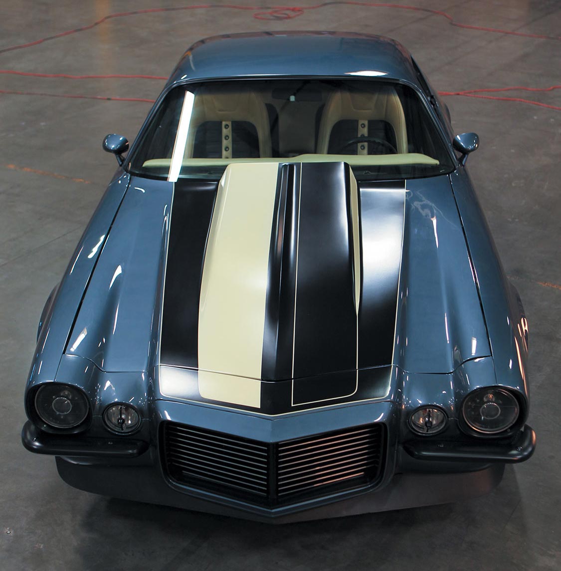 Garth Hammonds has worked for TMI for a few years now so you would expect he’d have a cool vehicle like a ’70 Camaro with a worthy interior. Having a father who’s an auto painter, he was raised around custom cars and has developed a clearly defined vision. There’s an array of mods on the vehicle. First, he had the car dropped and added the 1993 Honda Civic door handles, he removed the front marker lights and he installed door poppers. The cowl induction hood is by Dynacorn and paint is Mini Cooper Thunder Blue by Johnny’s Auto Color and Body Works.