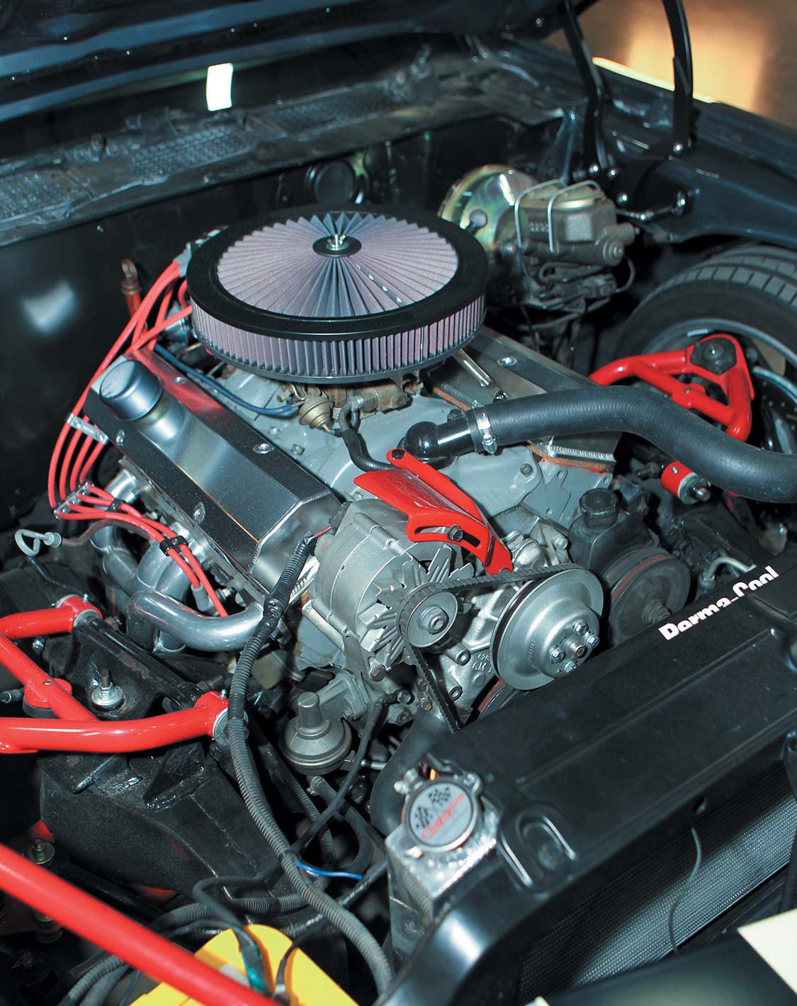 When the time came for paint, he took the car apart and dropped it off at Mark Hunter’s at Hunter Paint and Body. The motor went to Mark Rapp at Rapp Racing for a refresh. Several parts were sent out for powder coating as well, such as bumper brackets and gas tank. Michael told us, “I…wanted to do something different. All of the exterior trim, centers of the wheels, radiator, shroud, valve covers, and headers were ceramic coated by Code 510 in charcoal ceramic coating.” After paint, it took about six weeks to reassemble the car. Michael’s son, Chris, who now wants a classic car of his own, was there to help.