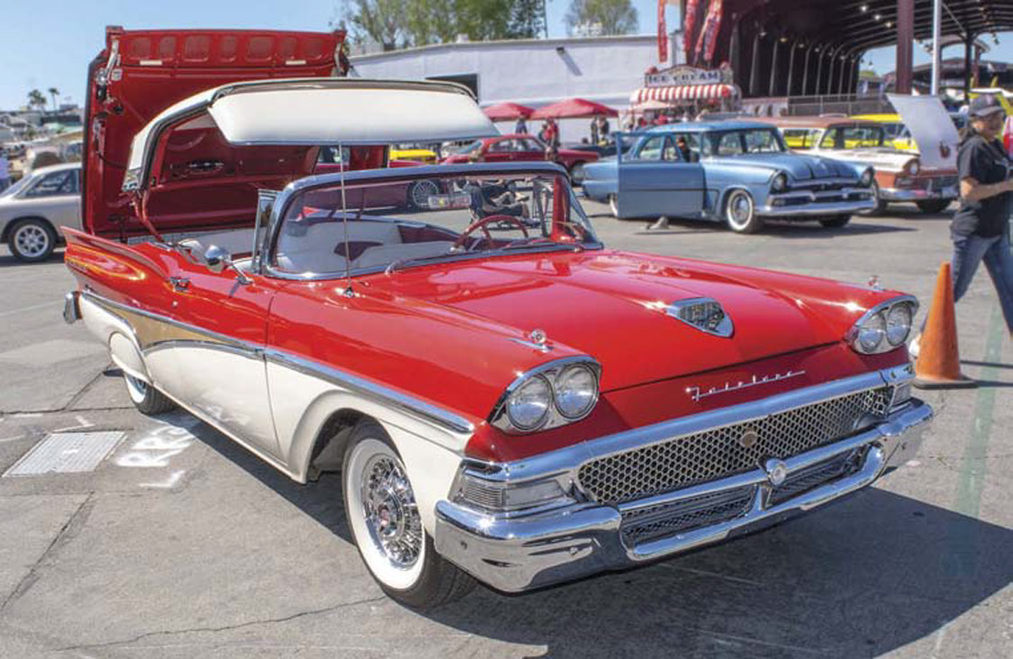 Earlier this year I went to my very first car show which was in Pomona. I went with a friend whose knowledge made cars come alive. I learned why cars look the way they look; that their designs reflected the era they belonged to. It never occurred to me there might be a reason a car looked a particular way. For instance, I learned that the 1950s brought us the decade of style. World War II was over, times were good, people were happy and the cars reflected it. Very cool indeed. However, the thing that switched on my lightbulb was learning that the cars from the late 50s and early 60s started taking on the look of jets and rockets attributed to our nation’s race to space. Bring on the fins and afterburners! My first favorite car era.