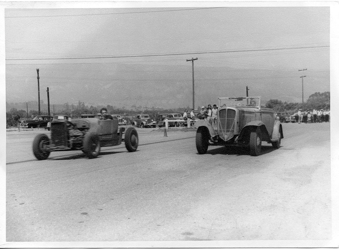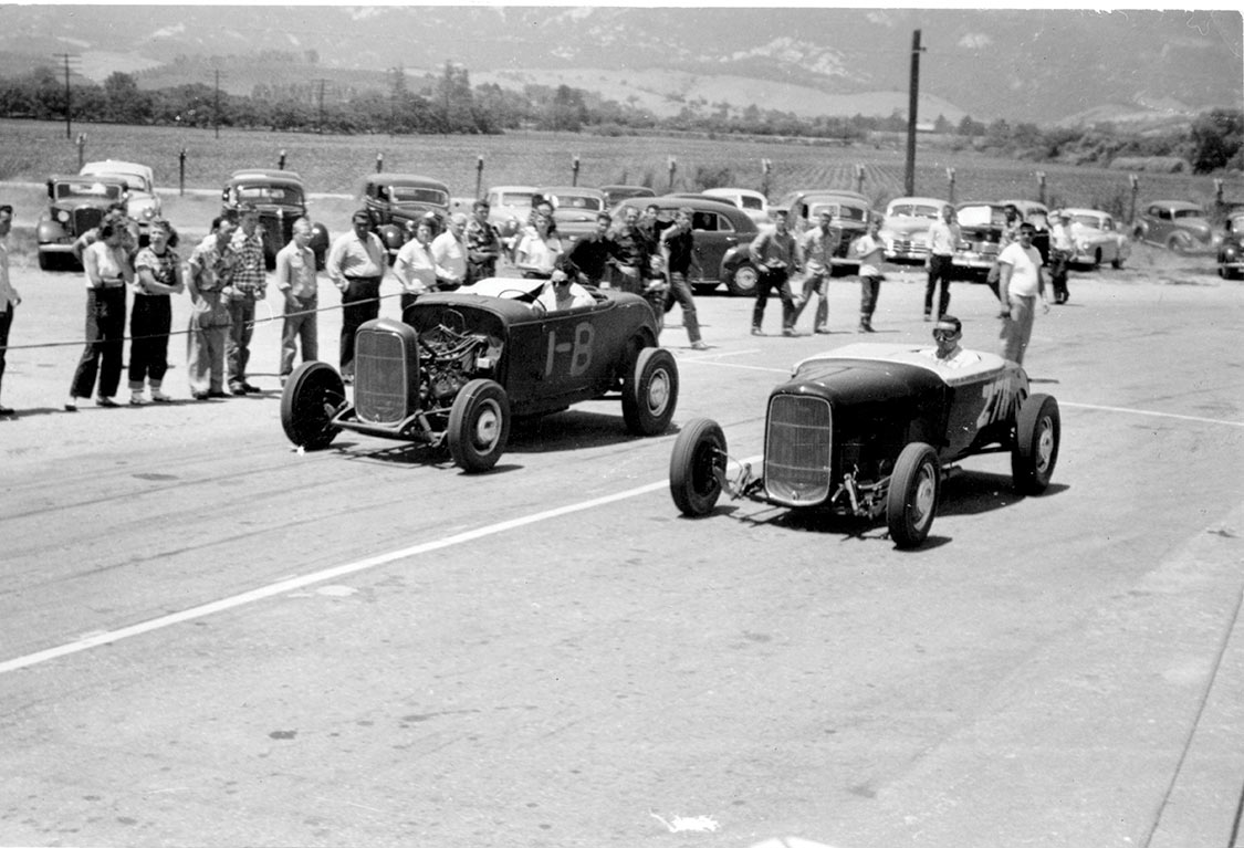 βAt the same time, a local group of us also used to go out to the municipal airport in Goleta. The west end of the airport used to be a Marine Corps Air Station, and there were a bunch of little revetments where they stored munitions. We used to go out there on Sunday and roar around the buildings one at a time. There was one little straightaway there, just a narrow little 2-lane road on some lost land, and we decided we could race side by side there. No one had adopted any standΒard length for acceleration runsβthe distance was typically whatever the available road permitted.