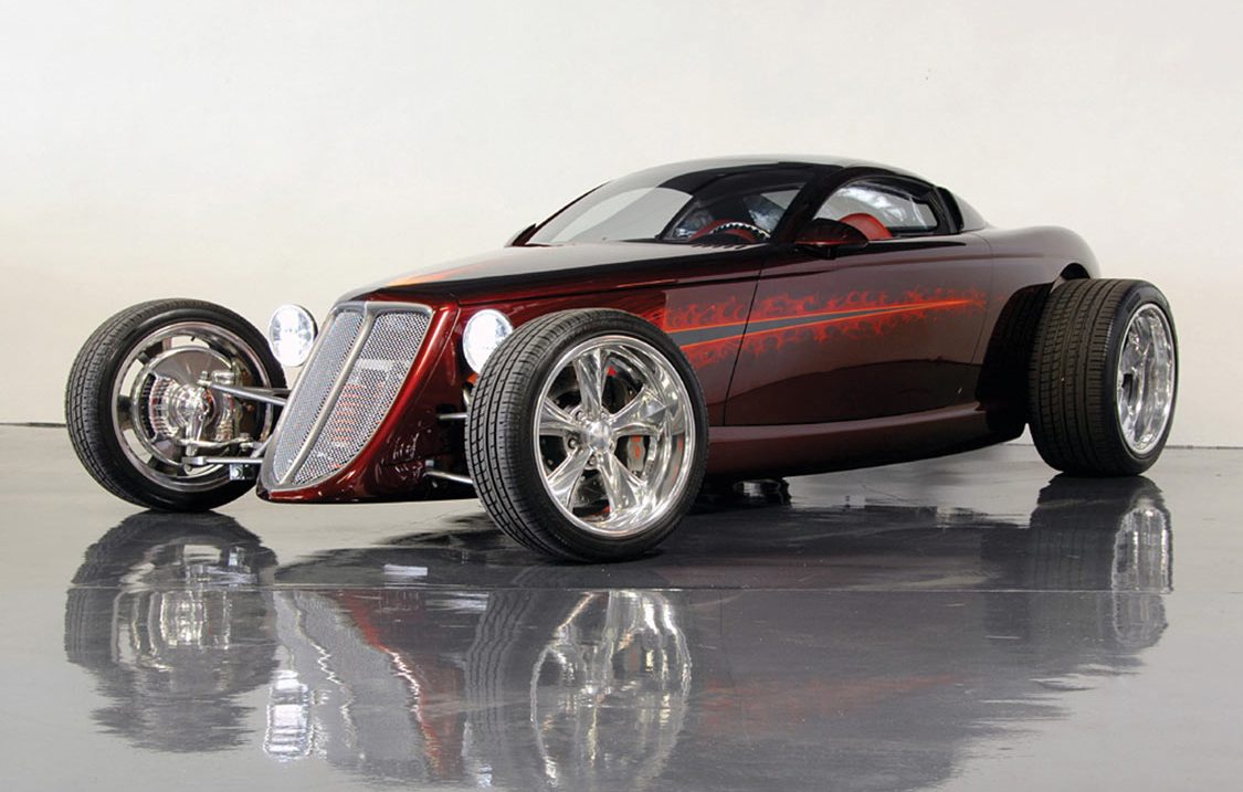 These transformations created the classic look we think of today as the Hot Rod archetype. For most of us this look is instantly recognizable. Today, you can see the modified body line carried forward and modernized in examples including the Foose HemisFear, and subsequent Plymouth Prowler, which share the open wheel, low-slung profile of the hot rodded versions of the ubiquitous Model A.