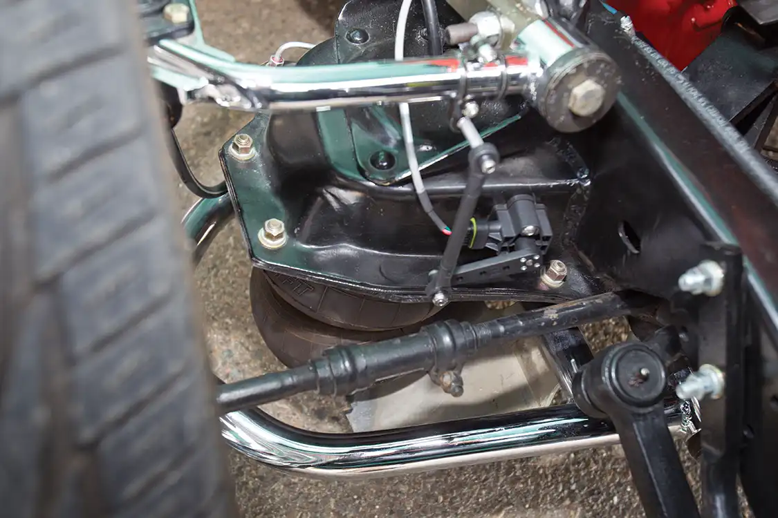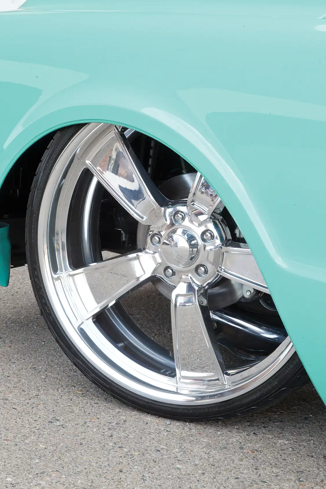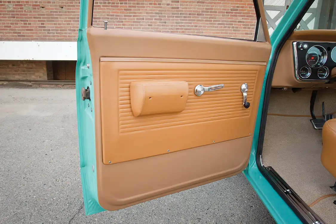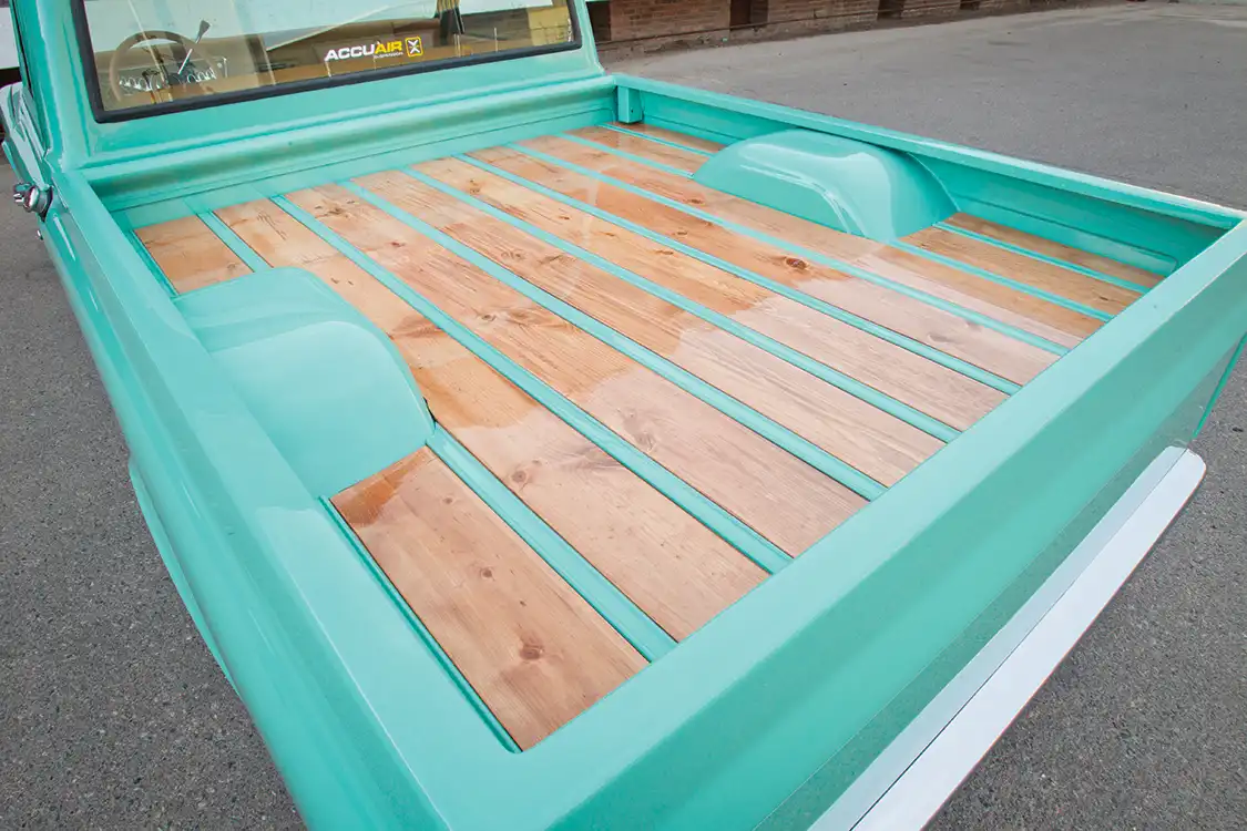 Then it was on to the body, which was brought back to life with LMC Truck bed sides, doors and a 1967 front clip. A Grant Kustoms rear tailgate skin was used and a raised wood bed floor was made from scratch. The body was worked perfectly straight and painted original light green. A set of 24-inch Raceline Burst 5 billet wheels completed the look on the exterior, while the interior was sent to Central Valley Upholstery. Afterwards, the truck was quickly assembled into the gem you see here. The crew loaded it up and headed for Las Vegas.