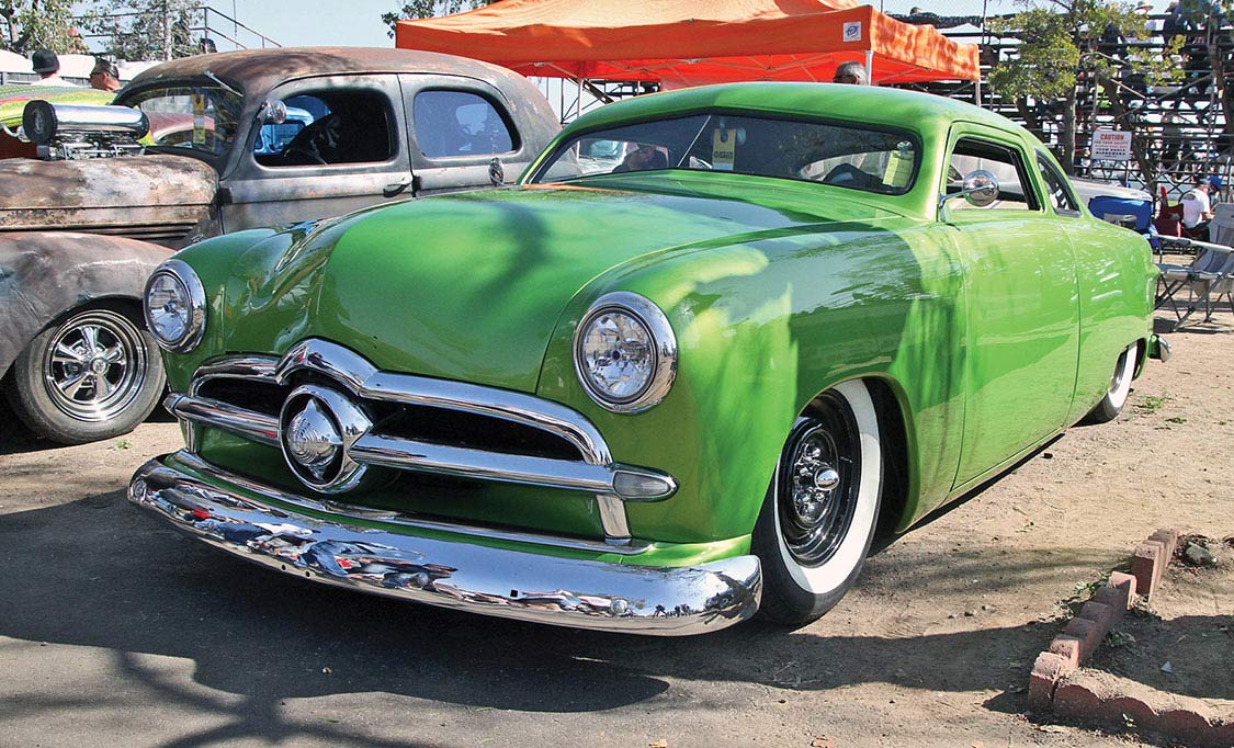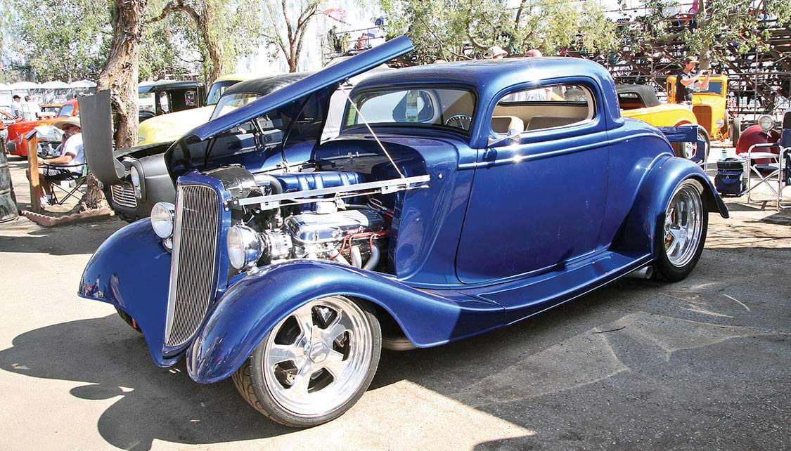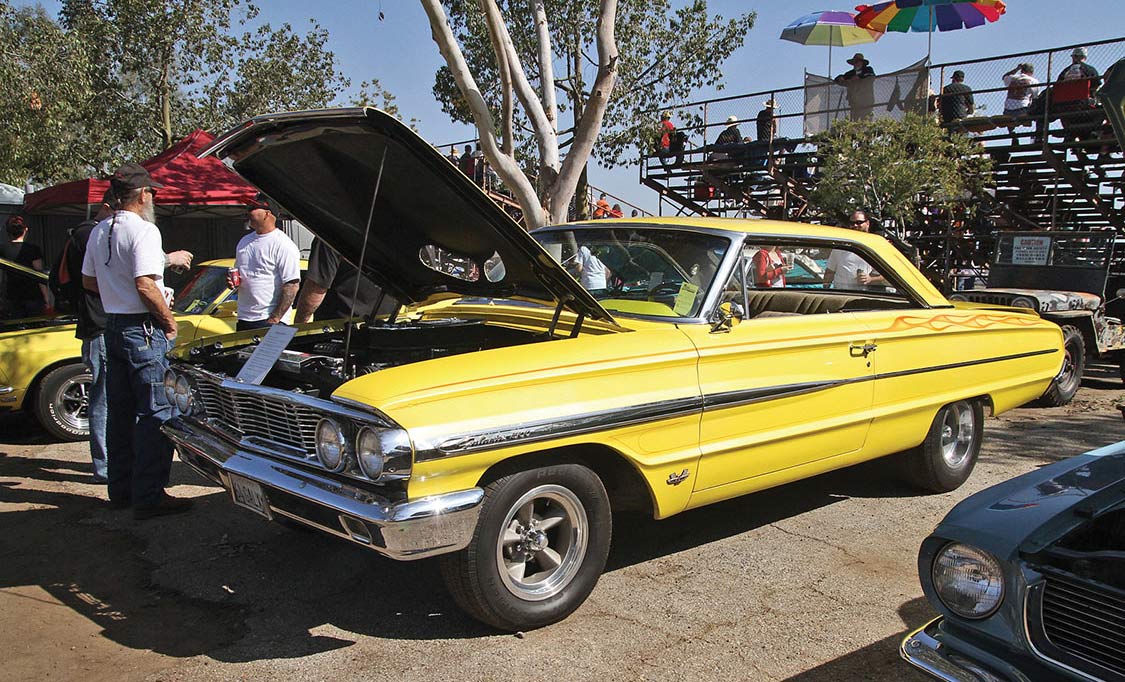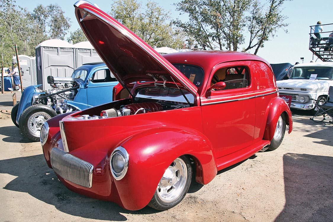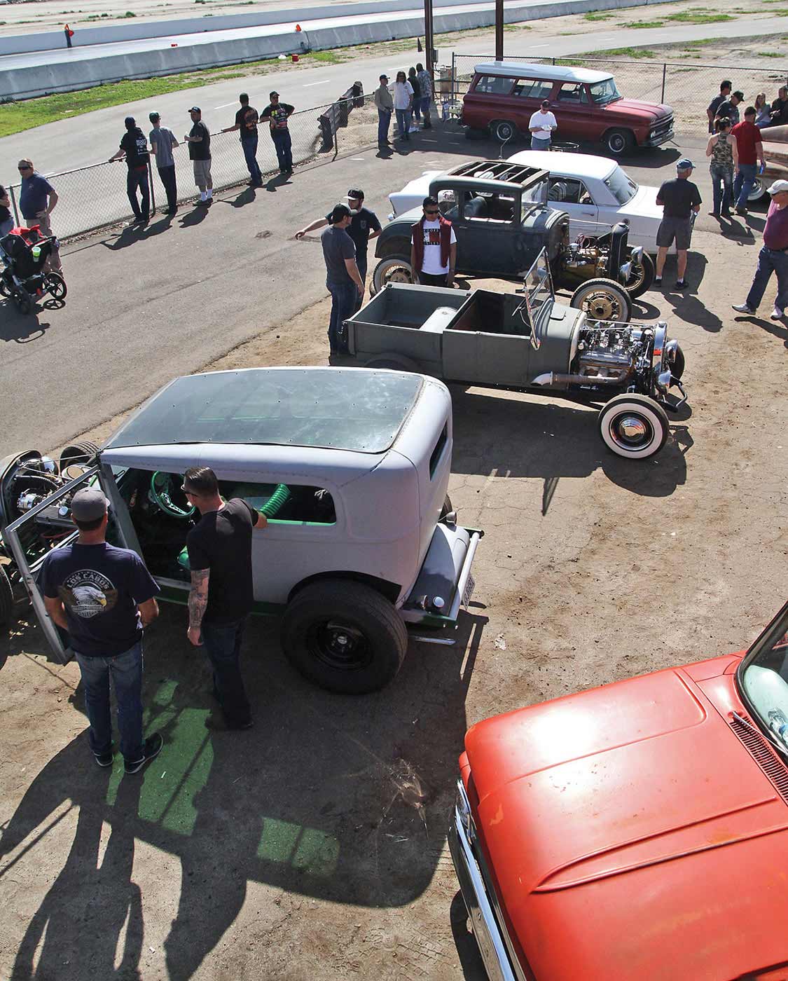 The grandstands stretch the length of the quarter-mile Auto Club Raceway at Famoso, near Bakersfield, California. Behind the grandstands is an area called The Grove. It’s a beautiful area filled with trees, each one is planted in memory of a special hot rodder who has passed away, and each has a plaque identifying for whom the tree was planted. At the 57th annual Good Vibrations Motorsports March Meet The Grove was filled with 150-plus beautiful show-and-shine cars that stretched the length of the track. The rat/vintage rodders occupied their usual spot at the end of the grandstands. The weather was perfect for a quarter-mile walk through the tree-lined Grove.