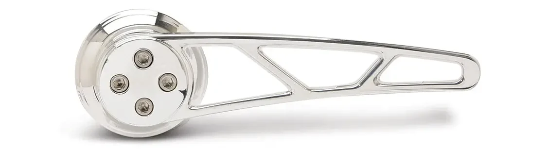 Ready to replace your outdated factory interior window crank, vent crank, and door handles? Eddie Motorsports has created billet handles for interior windows and doors for Ford trucks. Features include precision-machined T-6061 billet with a new modern shape for your window crank, vent crank, and door handle. Finishes are available in polished, satin, matte black, gloss black, as well as Fusioncoat red, blue, or white. These are direct replacements on stock Ford splines, and they’re sold in pairs.