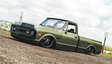 For the sake of starting somewhere, let’s begin at the bottom and examine the F-100’s one-off chassis. Even though Billy does operate his own auto-based business, McSwain Automotive in Rockwall, Texas, he left the redesign of his Ford’s foundation largely in the hands of Roger Lynsky of RPL Customs— a seasoned custom builder with an eye for high-quality rides. He knew that the truck’s original frame would never allow it to perform at the level Billy had envisioned. To reach a much lower altitude with utmost reliability and performance, Roger fabricated his own custom frame while utilizing Porterbuilt components and air-ride products from Air Lift Performance. Once the full articulation of the chassis was noted, Roger then began researching the correct dimensions for the 20-inch wheels and tires that would soon make their way onto the scene.