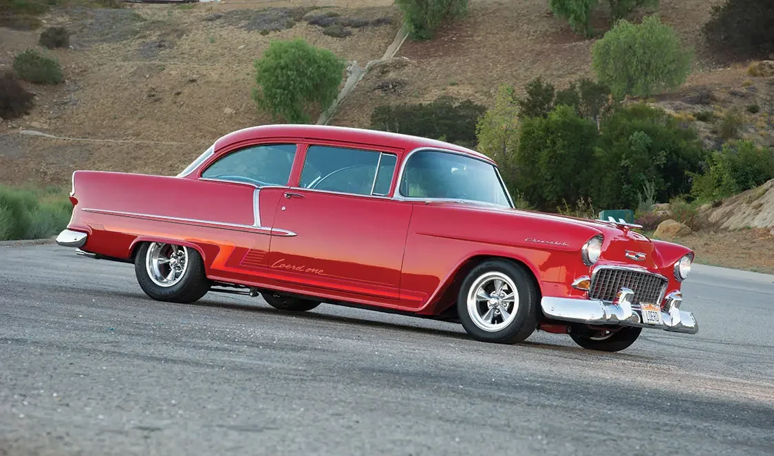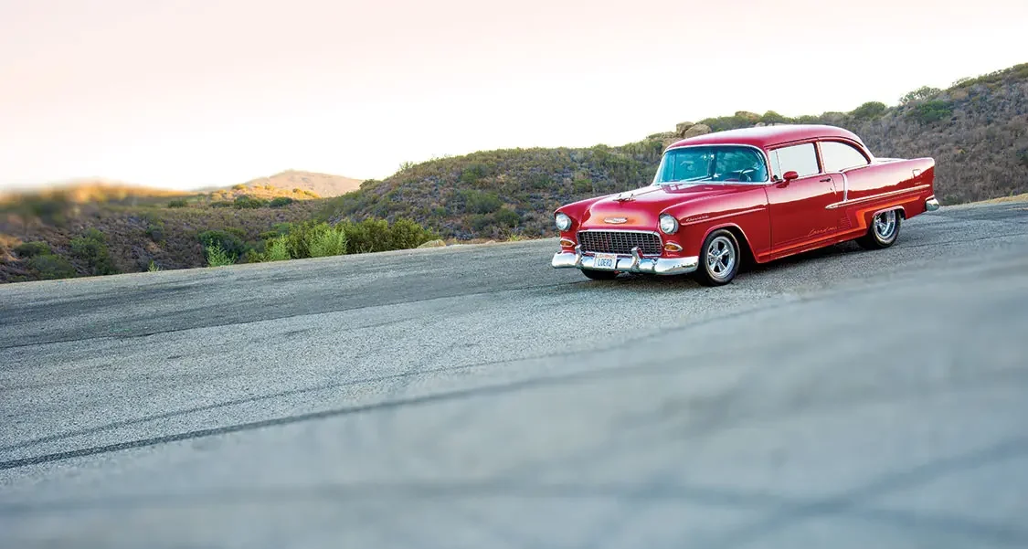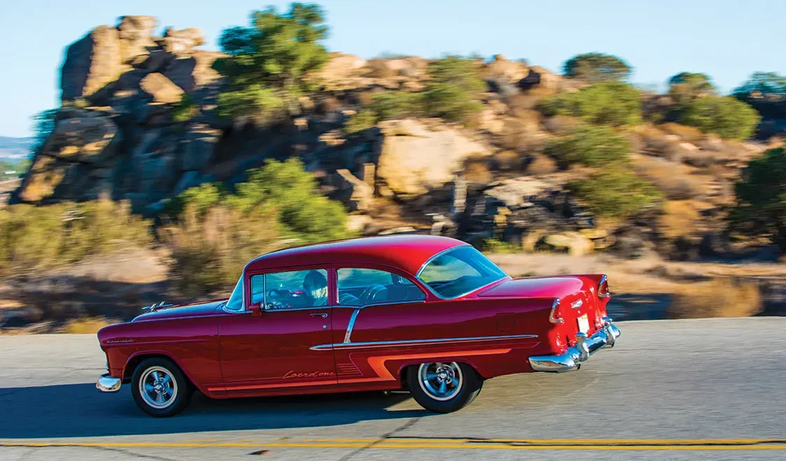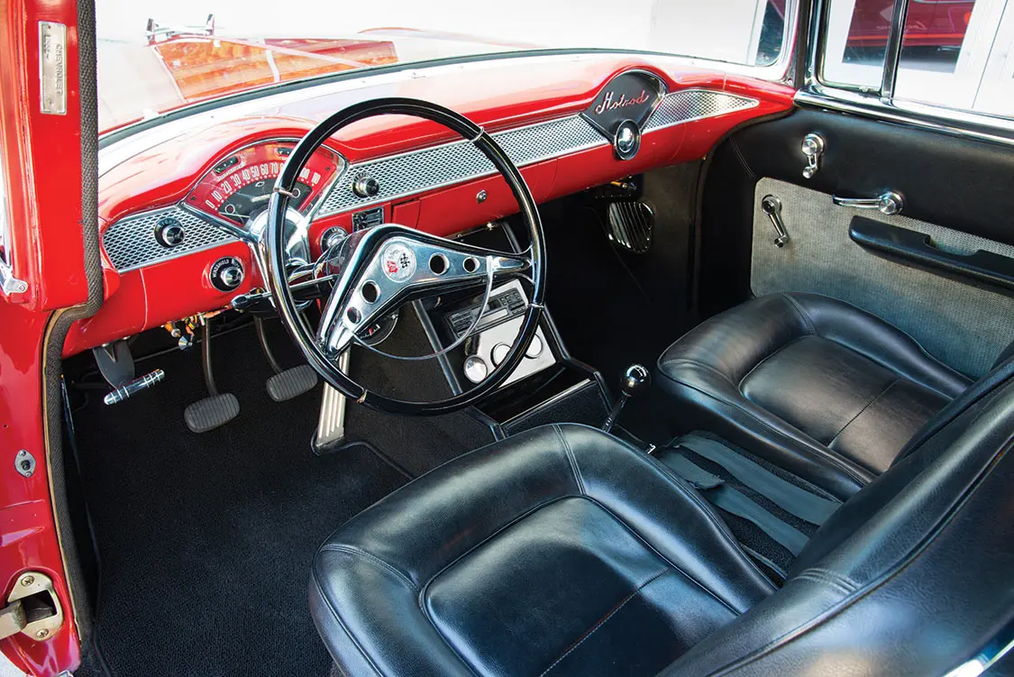 Dolman continues to drive his ’55 often, and hard, as he has frequently ventured out to events in Merced and Pomona. He enjoys being entertained by the engine sounds emanating from the S&S headers pushing exhaust pulses through a 2.5-in. system with Magnaflow mufflers and a crossover pipe. The red Chevy is recognized at cruises and gatherings all over Southern California and was awarded best Tri-Five at the national Super Chevy event in 1983. The highest compliment to his build is that other ’55 owners have acknowledged that his car influenced their later projects, sometimes copying his early vision verbatim.