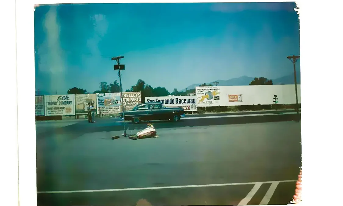 The detailed scrapbook that Dolman has on his Chevy since 1960 is impressive. The first two years, he kept the Chevy in the original yellow and white. Then in 1962, the car was reshot all in yellow. A full-color change to a metallic charcoal came along in 1965. In 1979, when Dolman admitted he “didn’t like the color anymore,” he changed the Del Rey to a brilliant custom red lacquer coat. The car wears the same paint today. The coat looks as good as new, though in 1987 Dolman succumbed to the coaxing of his painter to add some graphics.