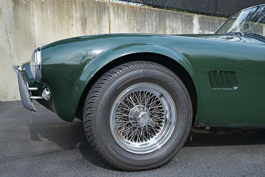 The car was then invoiced to Coventry Motors, Inc. in Walnut Creek, California. By the time the car got to Coventry Motors, it was Vineyard Green, and the interior is beige leather. The car featured several Class A accessories, including chrome rocker covers, white sidewall tires and a luggage rack. The small Ford V8 had been fitted with two 4V carburetors and a manifold assembly, plus a large competition oil pan, for a total of $5739.05. That was a lot of money in 1963. The brand-new Corvette Sting Ray cost just $4,038 in that year.